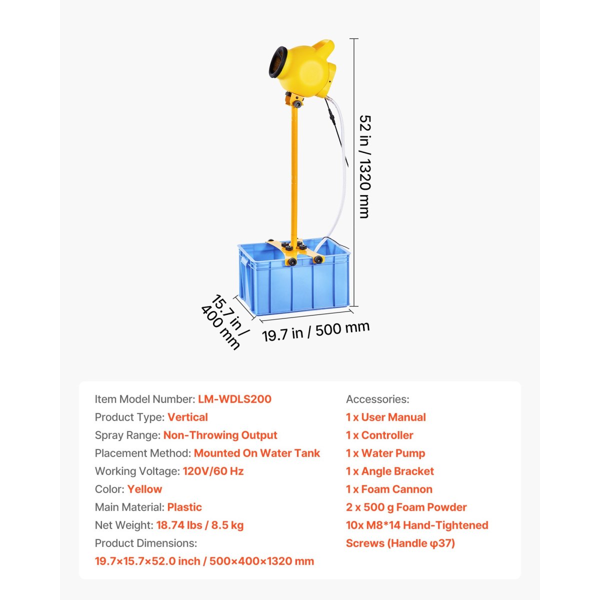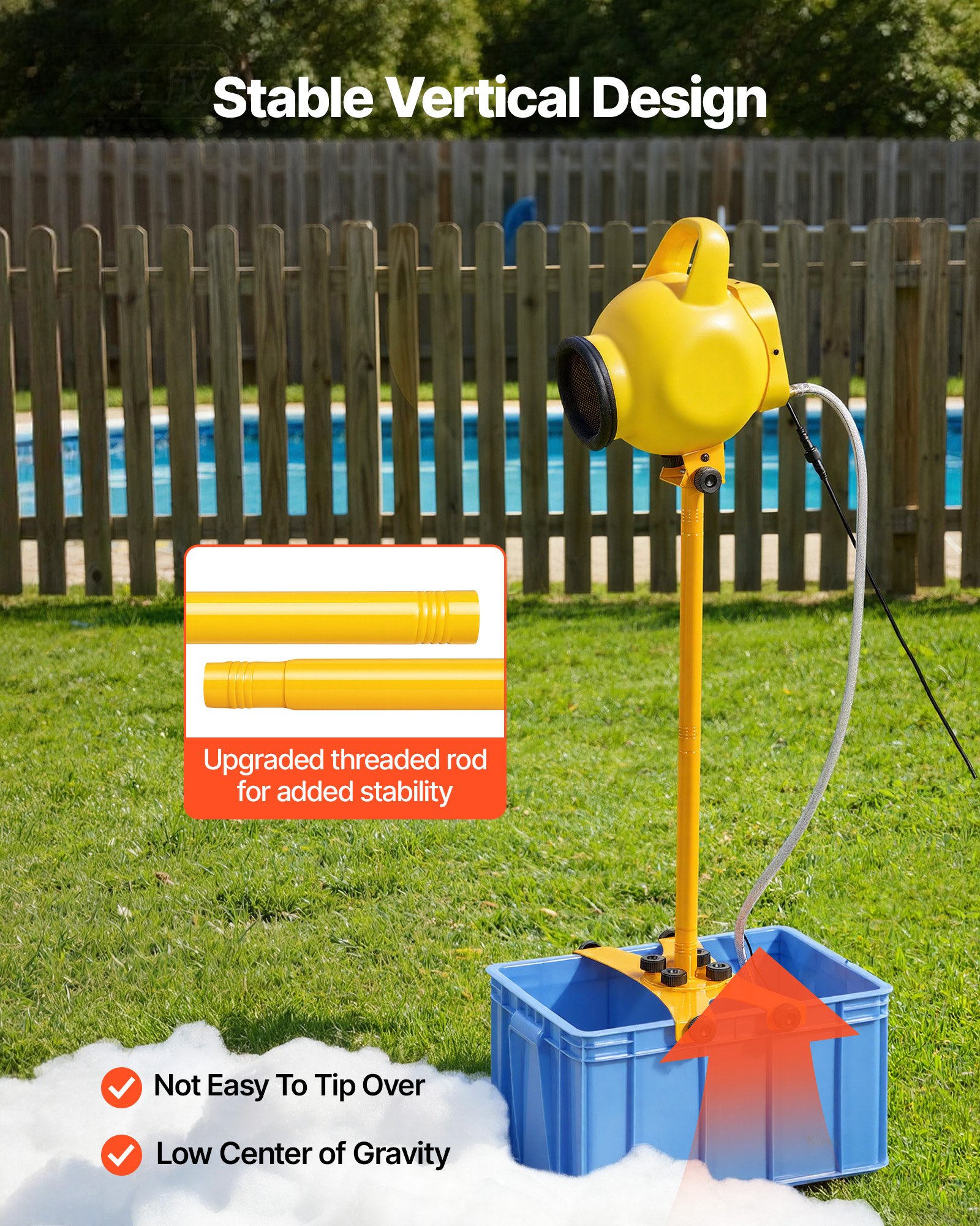Stable Vertical Build: Featuring a vertical structure installed directly on the water tank, this setup avoids wall mounting or complicated supports. The upgraded, extended threaded rod enhances running stability. Even with heavy foam and damp ground conditions, our foam party cannon remains upright and steady in use