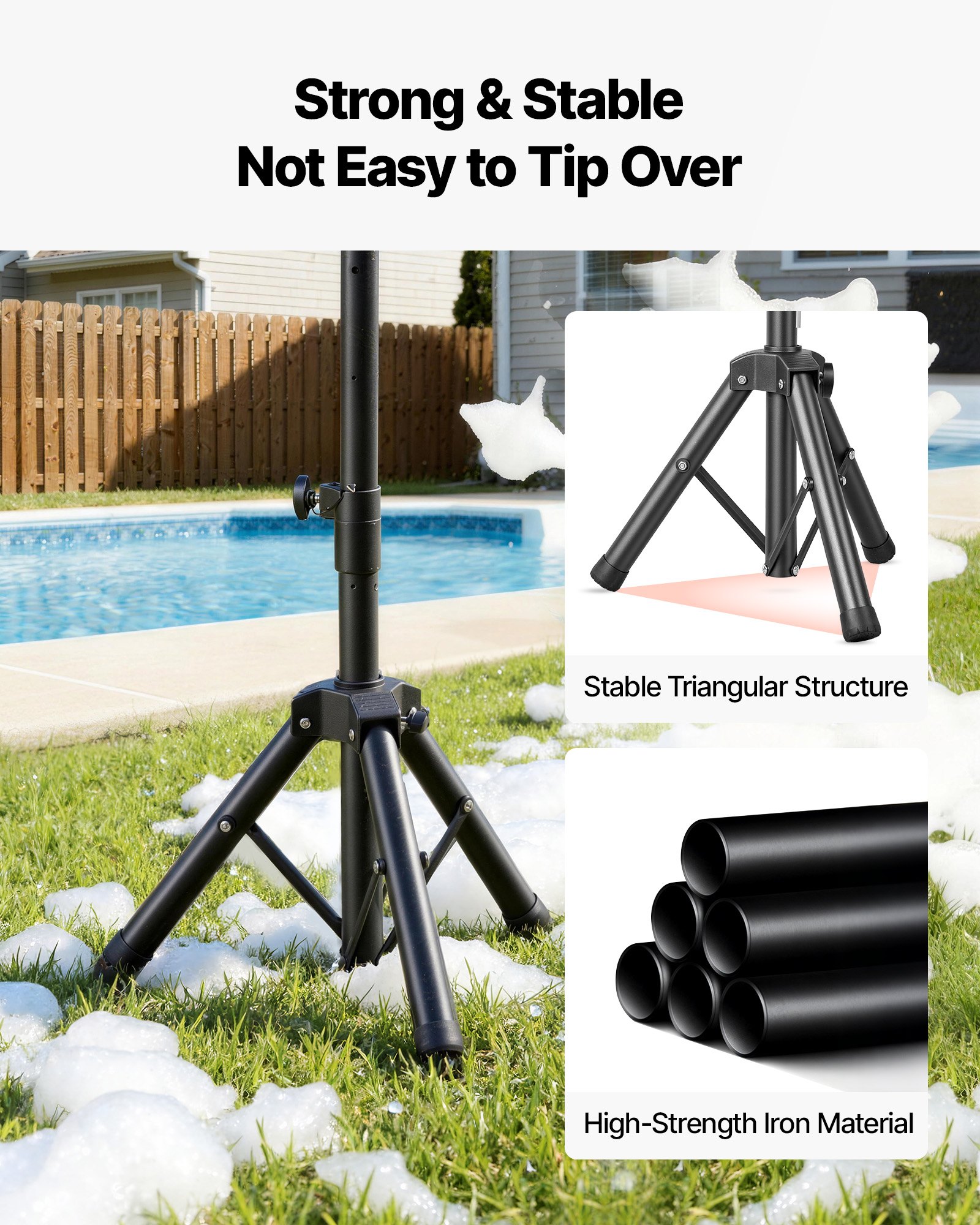 Stable Tripod Support: A reinforced triangular tripod paired with strong iron construction provides dependable support during use. Even in busy party settings or when children are playing nearby, the foam party cannon stays balanced and secure, helping minimize unwanted movement and keep the event running smoothly