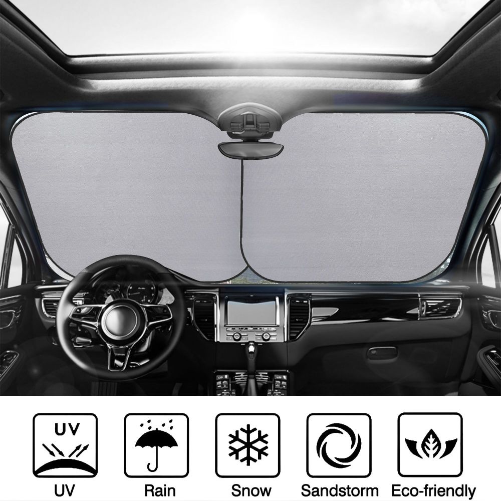 Applicable scene: 2-piece windshield sunshade for most cars, SUVs and trucks.