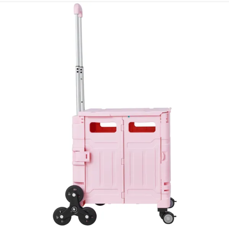 Foldable Cart With Stair Climbing Wheels Collapsible Rolling Crate 65L