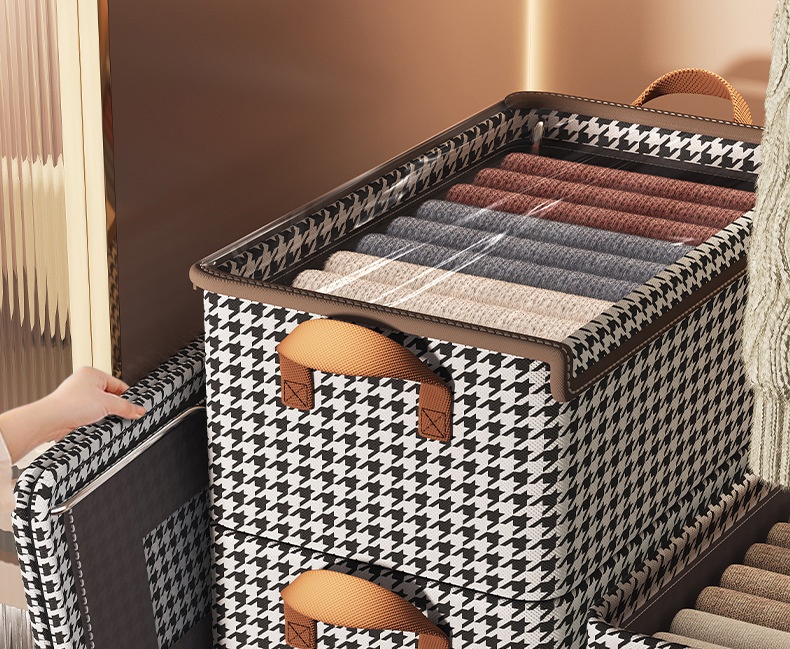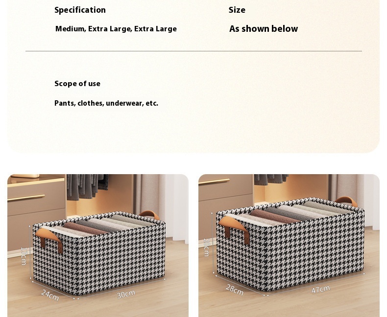 Color: houndstooth steel frame with lid/medium [30*24 * 17cm], houndstooth steel frame with lid/extra large [47*28 * 20cm]], houndstooth with cover steel frame/oversized [50*32 * 30cm],