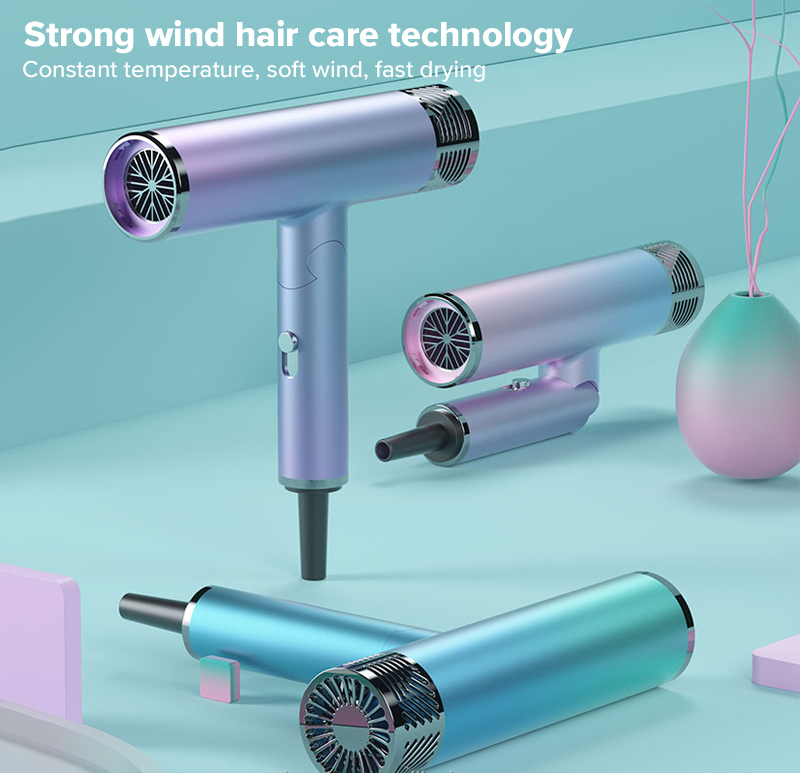 Ionic hair care, built-in ions, release a lot of ions during the hair blowing process, Smooth unwanted frizz and create shine on hair.