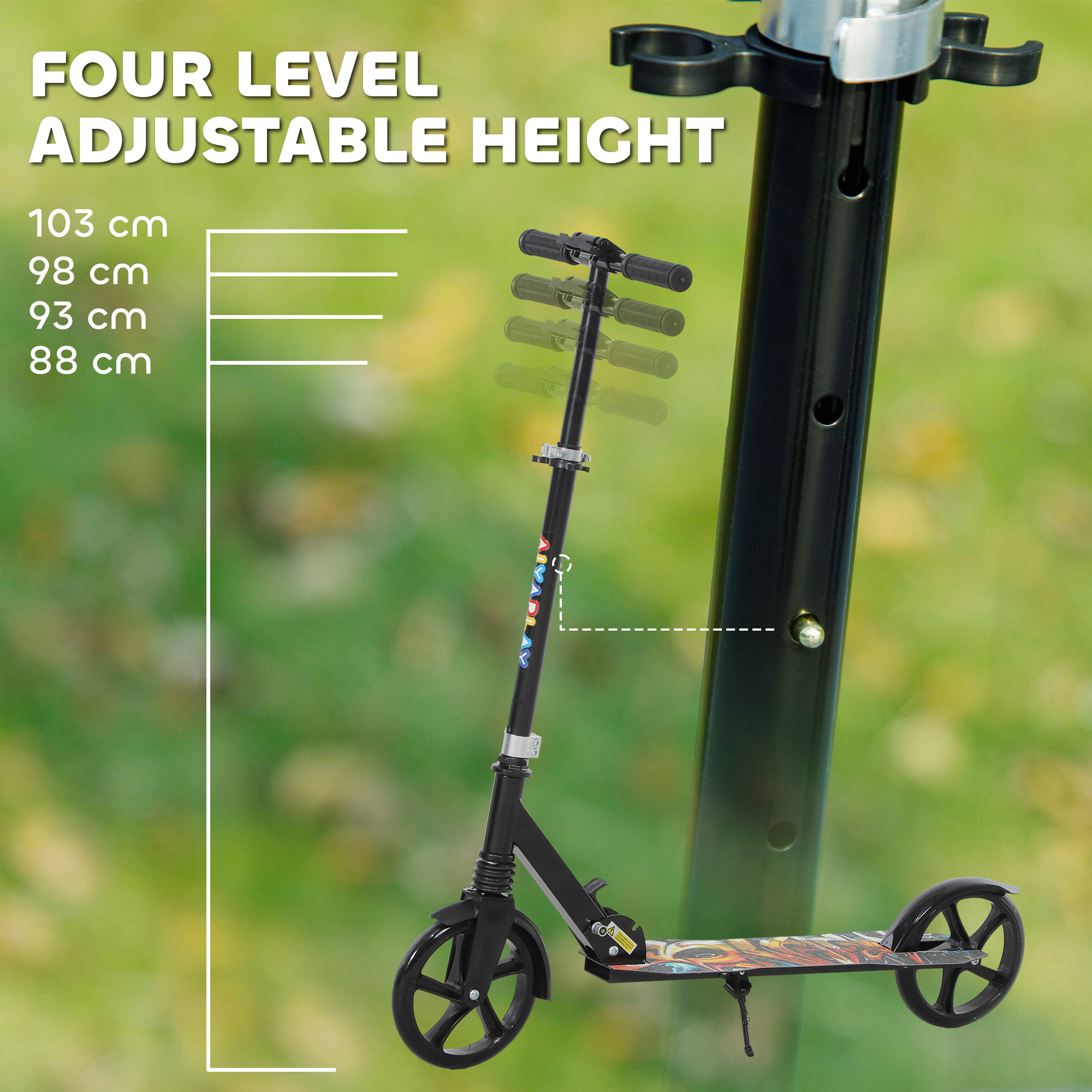 Outdoor fun is made possible with the kids scooter. Designed to grow with your child, it features four adjustable levels from 88cm to 103cm, suitable for ages 6-12 years. Smooth riding on various terrains, thanks to its front fork with shock absorption, it glides effortlessly on grass, gravel and cement. The rear brakes provide safe and swift stops. When finished, simply fold it for easy transport and space-saving storage. Great for little explorers ready for exciting adventures.