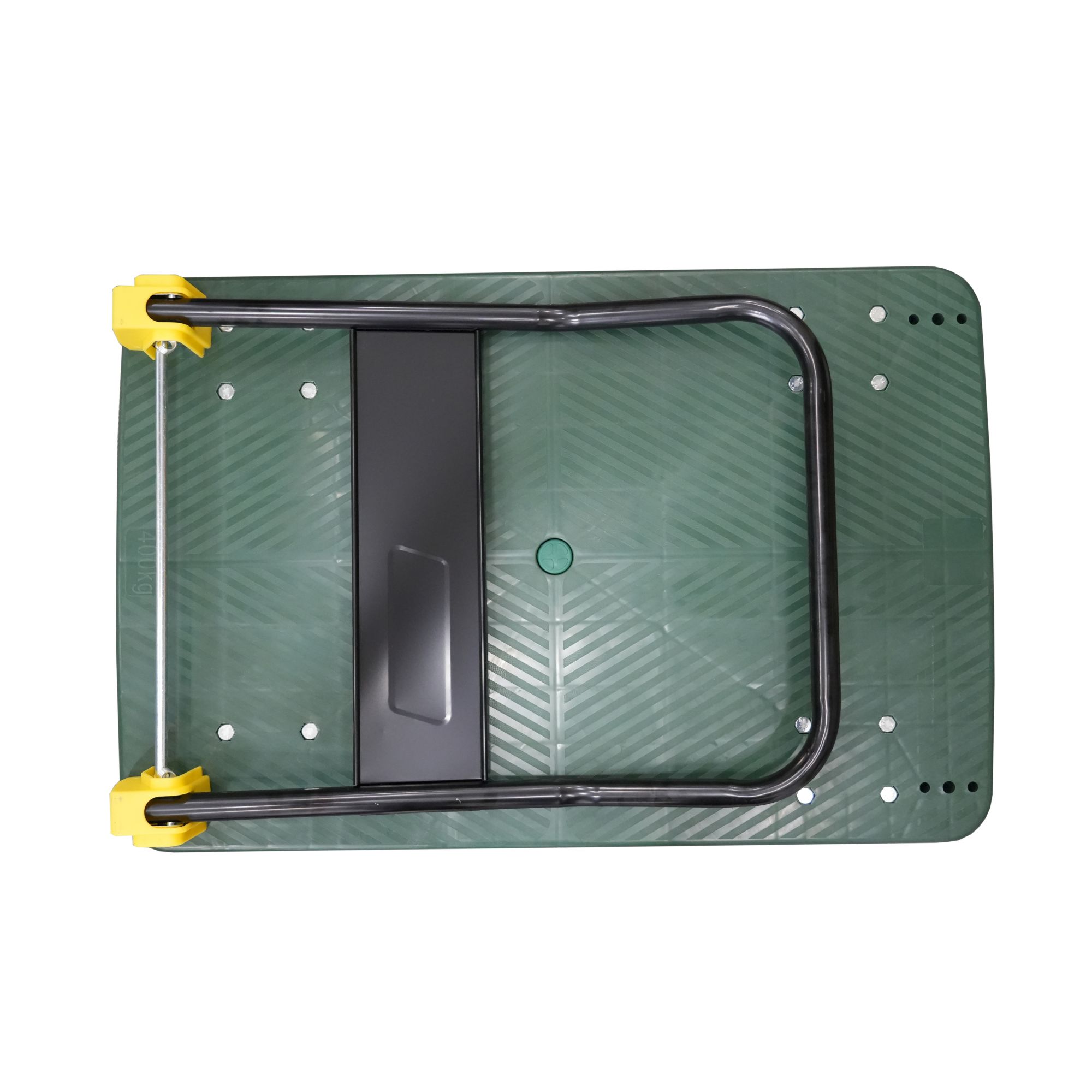 This 440 lbs. Capacity Platform Truck Foldable Push Hand Cart with 360° Swivel Brake Wheels features a steel construction for high load capacity. Anti-skid panels help prevent cargo from slipping off the cart. Thoughtful designs such as folding switches and silent wheels provide you with a better experience. Let you move the goods effortlessly and worry-free.
