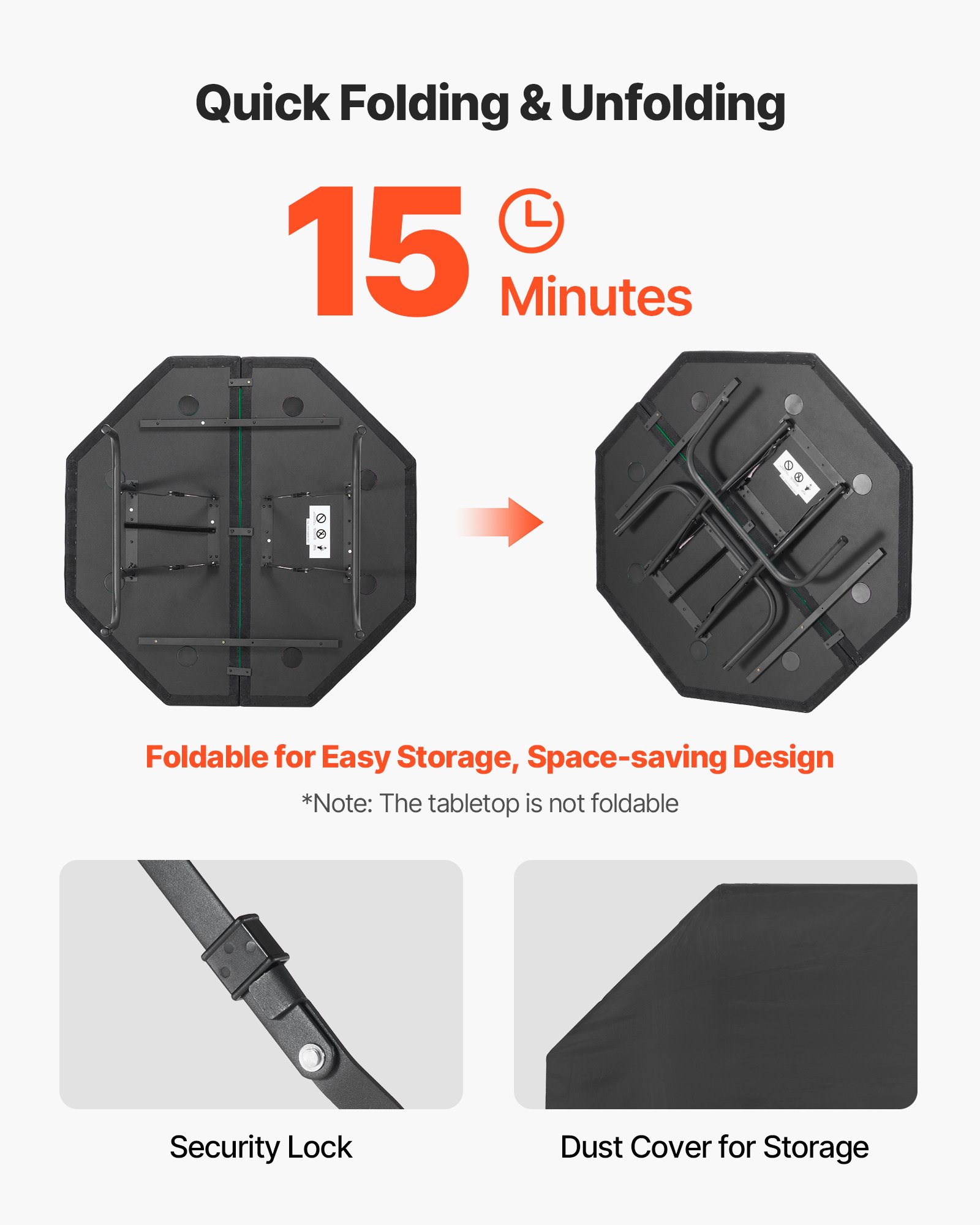 Easy Assembly: The foldable design with a security lock ensures quick setup and folding of the casino game table. The lock keeps the table stable when folded. Store it easily in a corner and keep it clean with the included dust cover