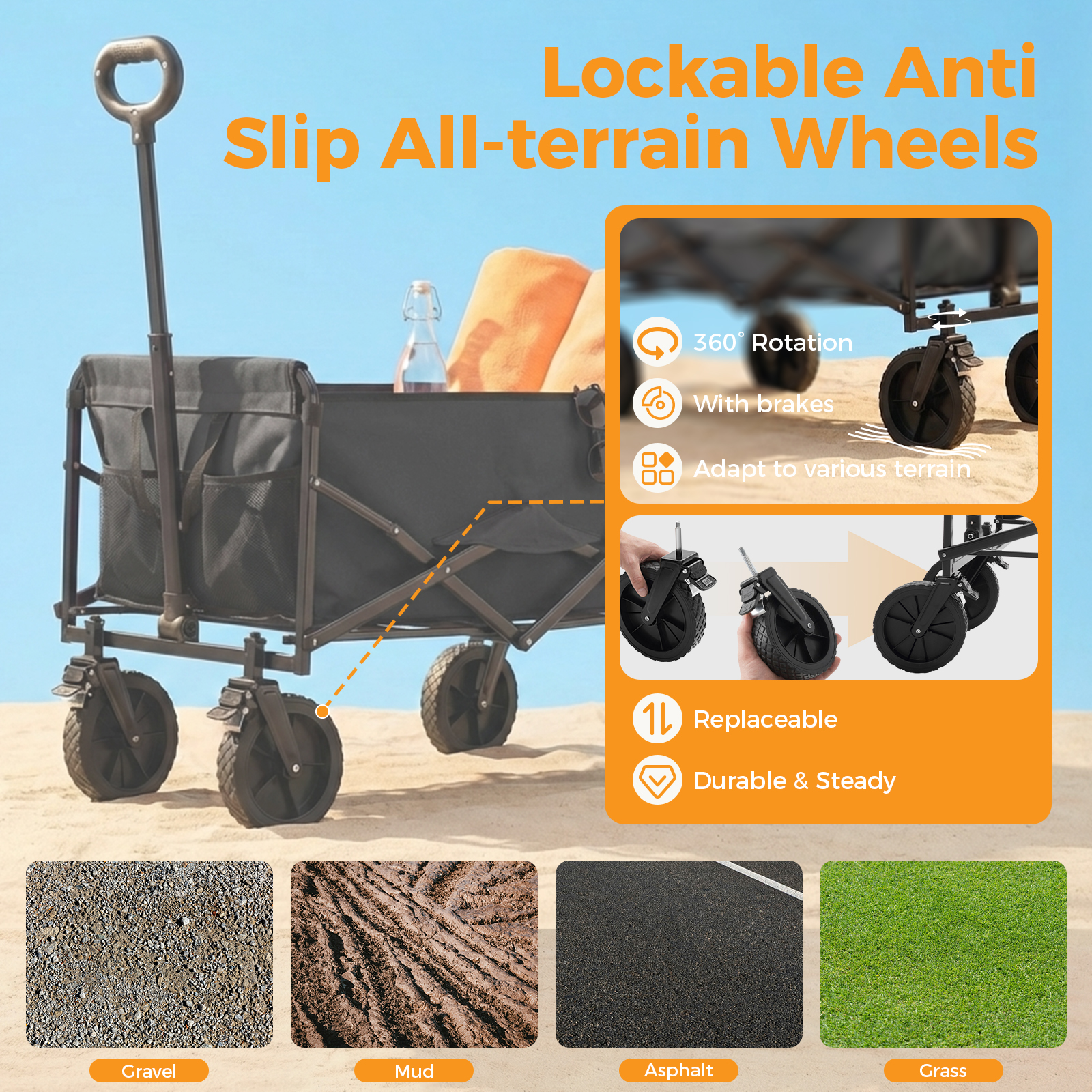 Adjustable handle, suitable for all scenarios. The handle length and angle can be freely adjusted, suitable for various pushing and pulling postures, whether it is camping, beach, picnic, daily shopping or gardening work, it can easily cope with, practicality is full.