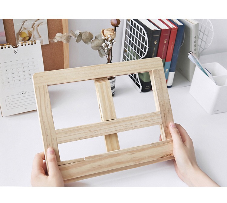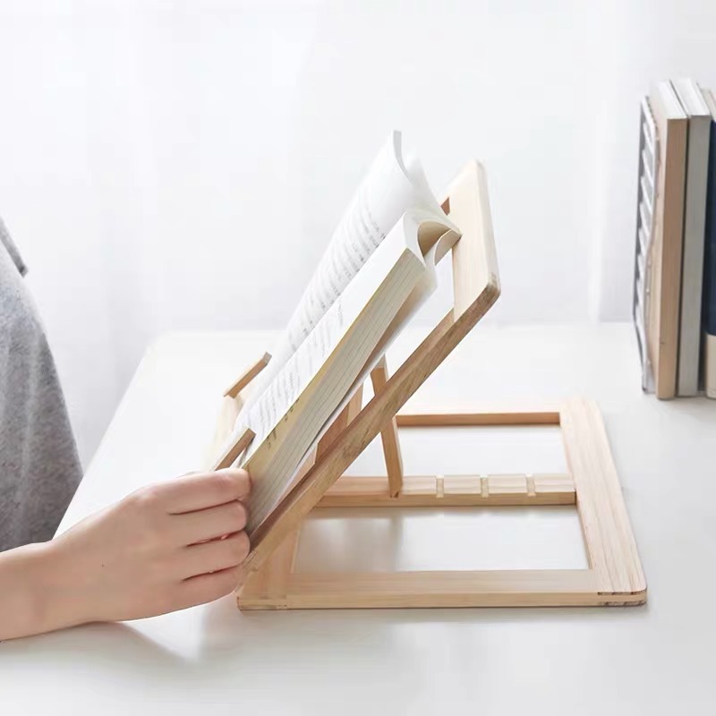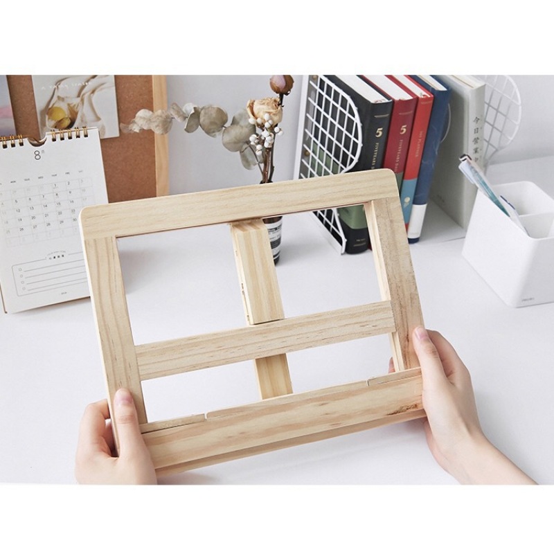 Foldable Wood Bookends Stand Cookbook Holder Reading Rack