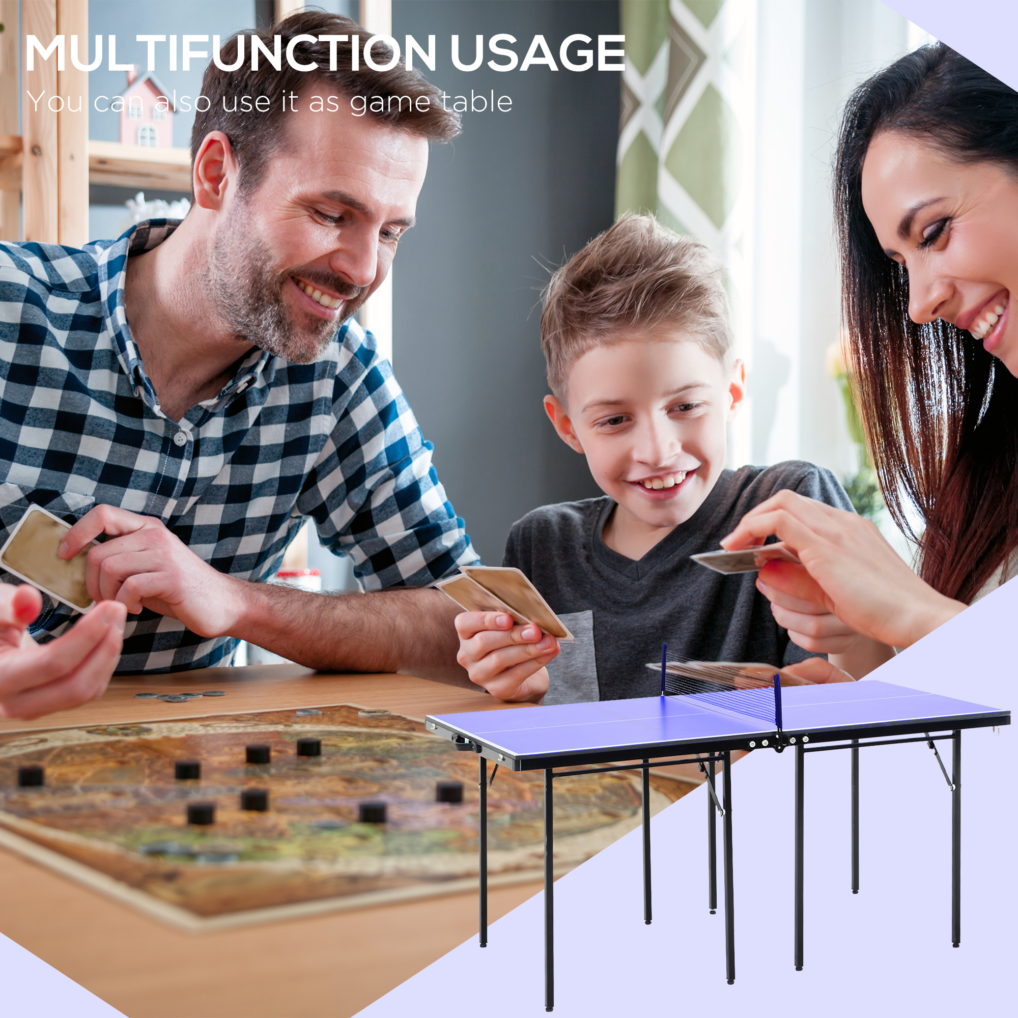 This table tennis set provides a great way to entertain your family and friends. Made with MDF with steel support and legs, comes complete with net for playing. The table can be folded making it easy to move and store, also if space is an issue you can place the table on top of our existing dining table so you can still enjoy the game.