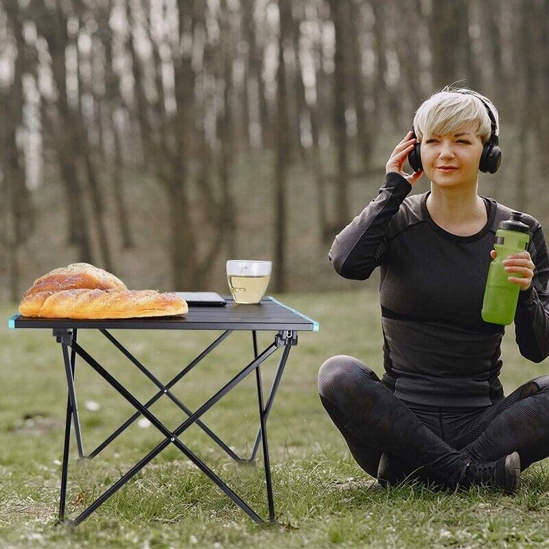 Unlike wooden or nylon table top portable tables, the aluminum table top is waterproof, weather resistant and easy to wipe clean, this table is made of aerospace grade aluminum alloy,