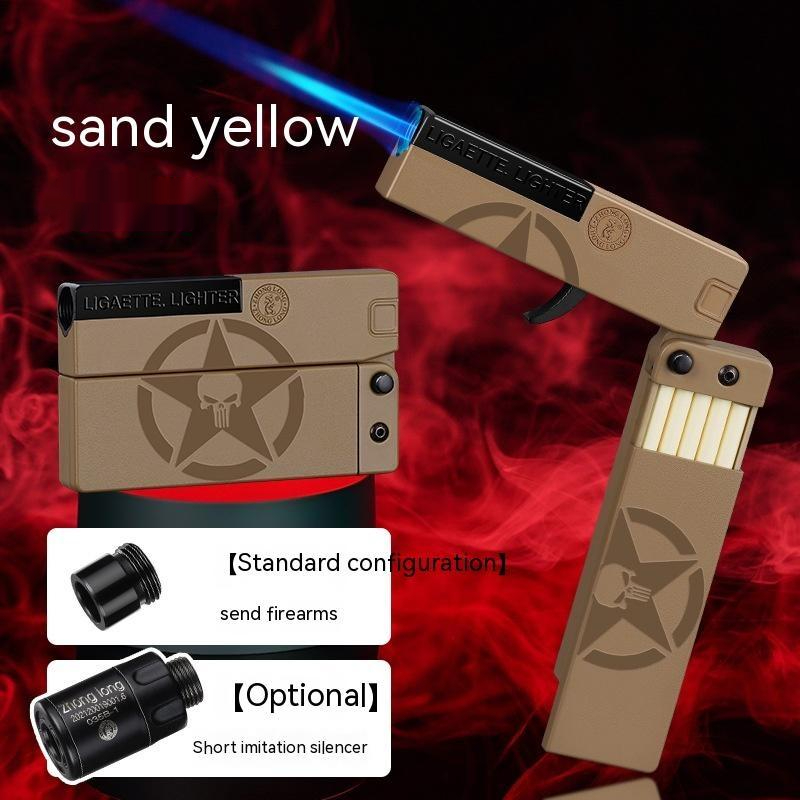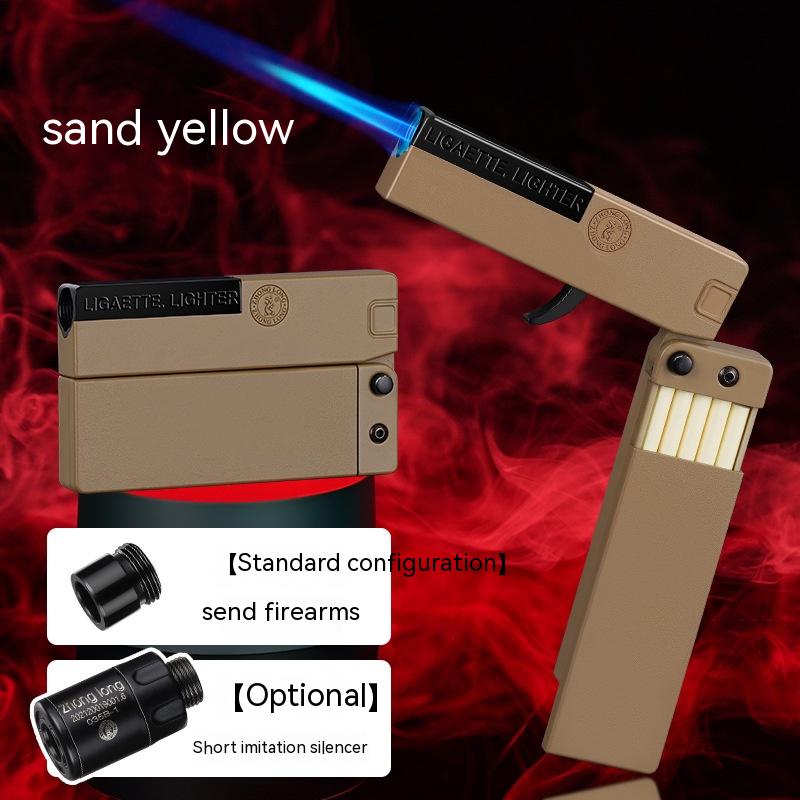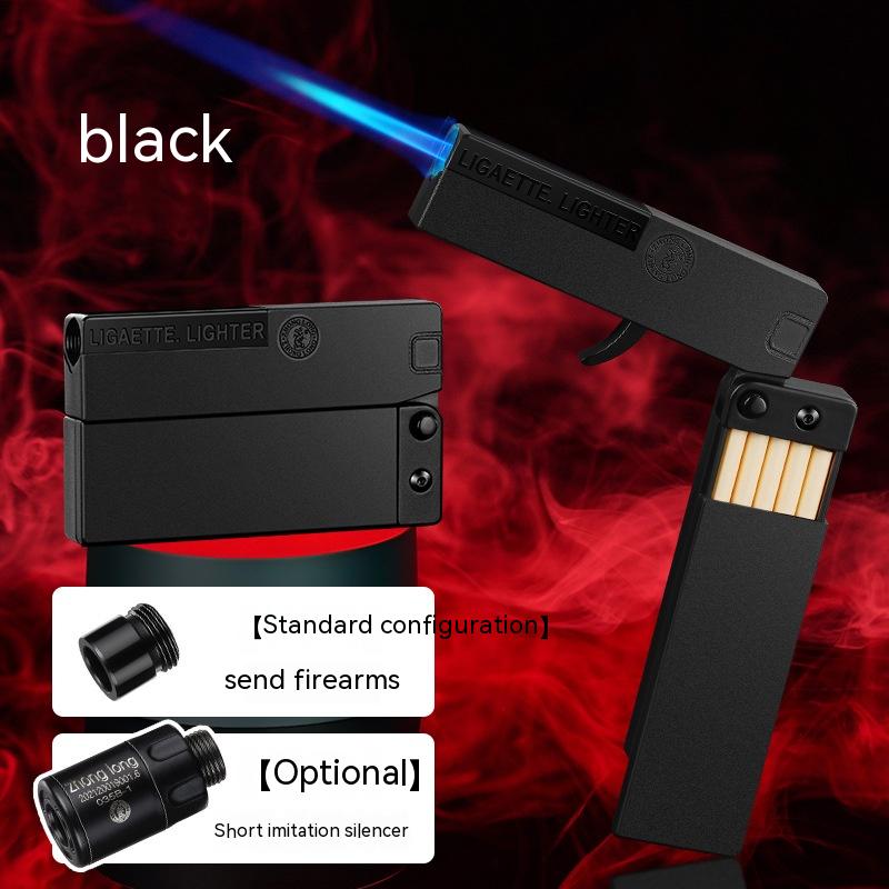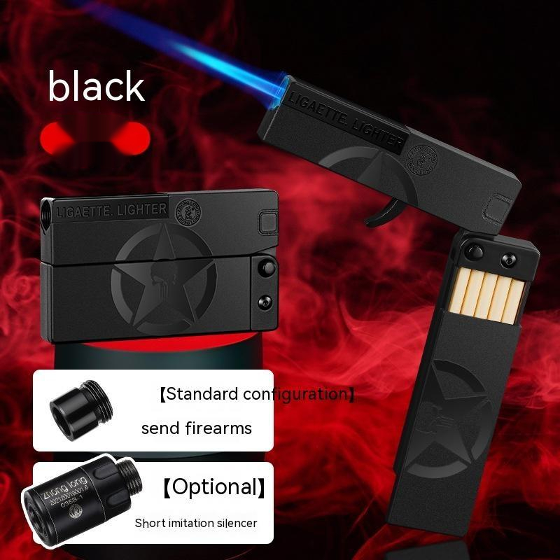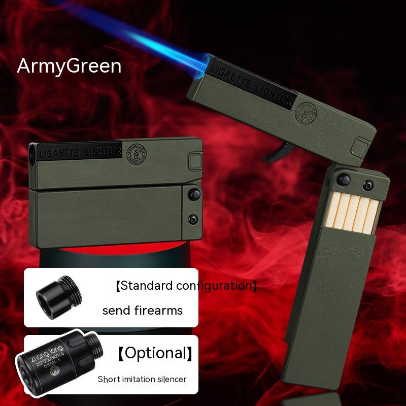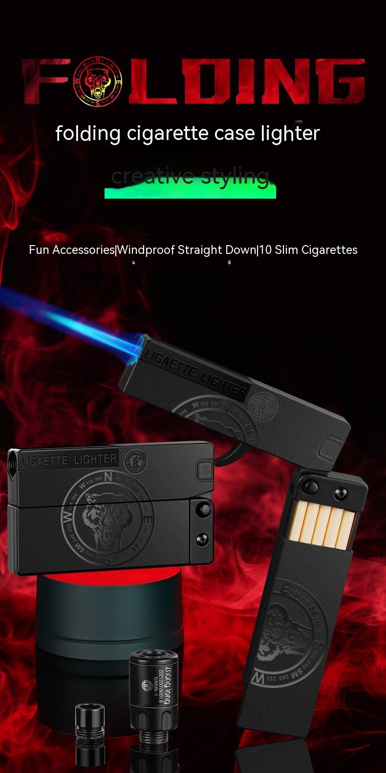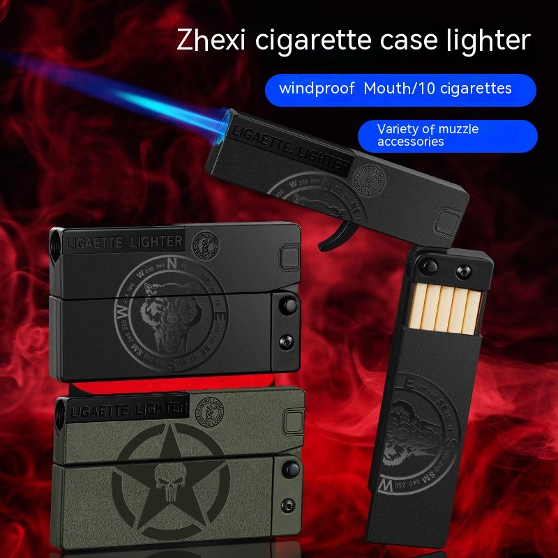 Folding Cigarette Case Windproof Lighter Personalized Gun-type Inflatable Blue Flame Lighter
