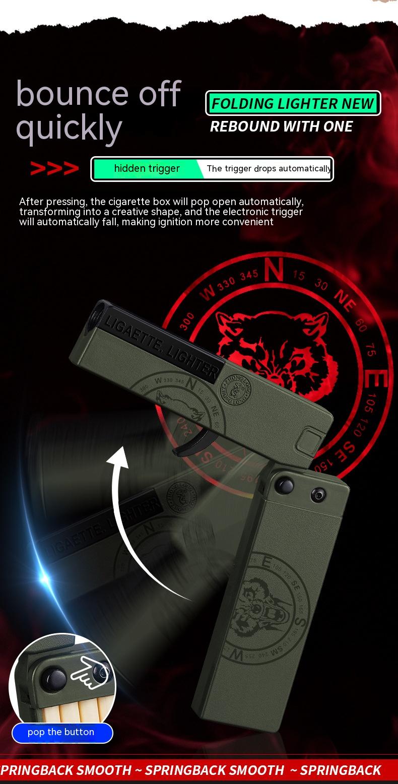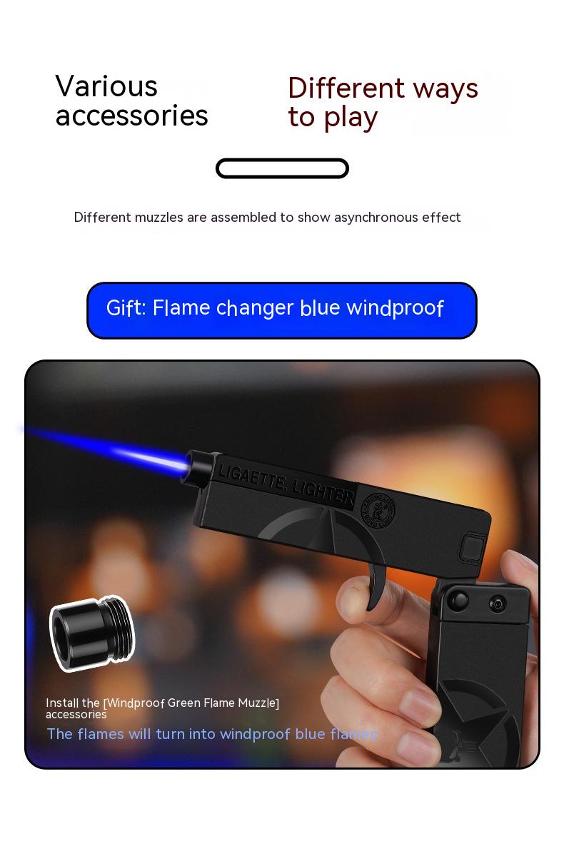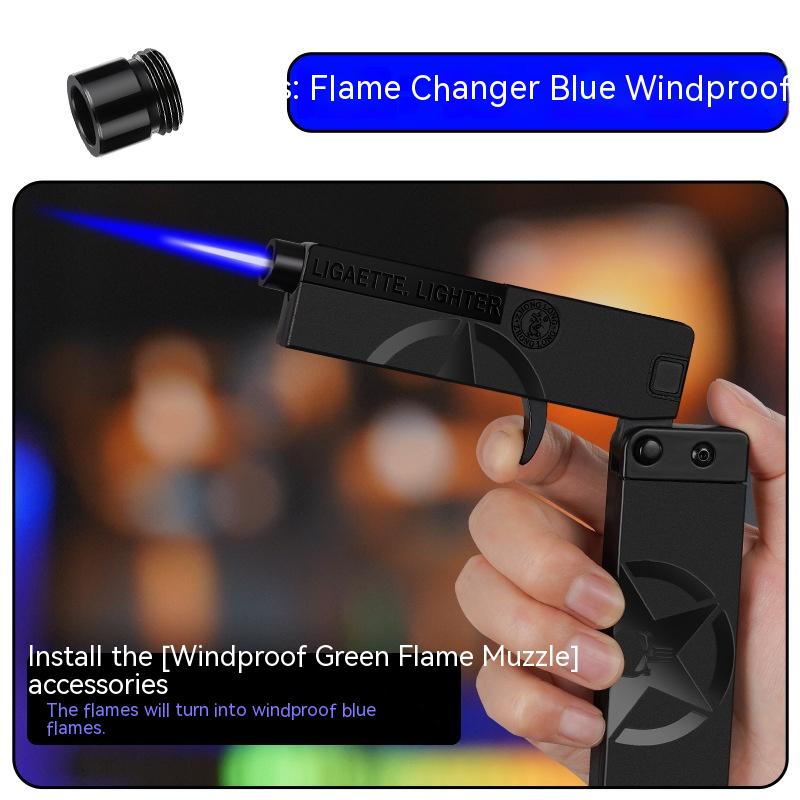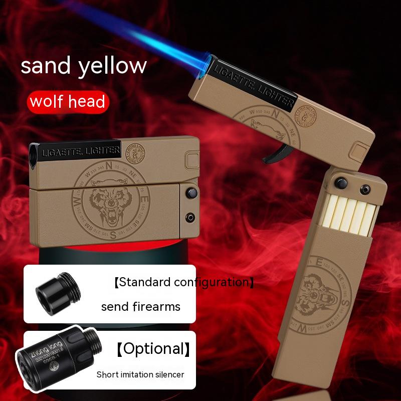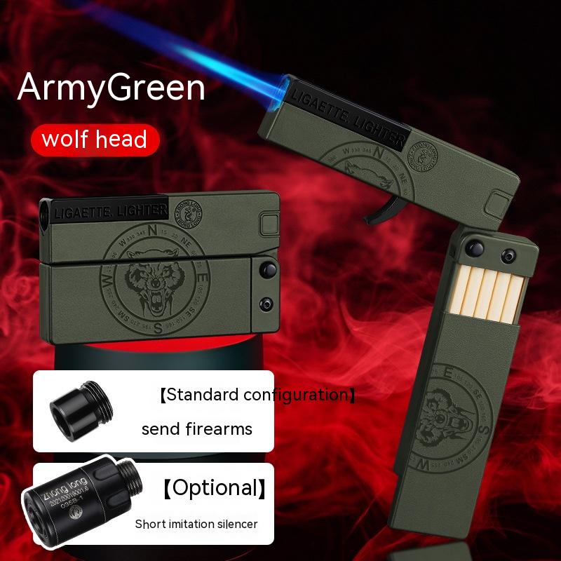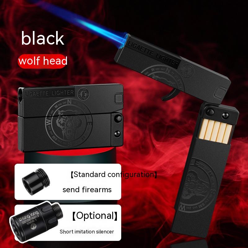 Folding Cigarette Case Windproof Lighter Personalized Gun-type Inflatable Blue Flame Lighter