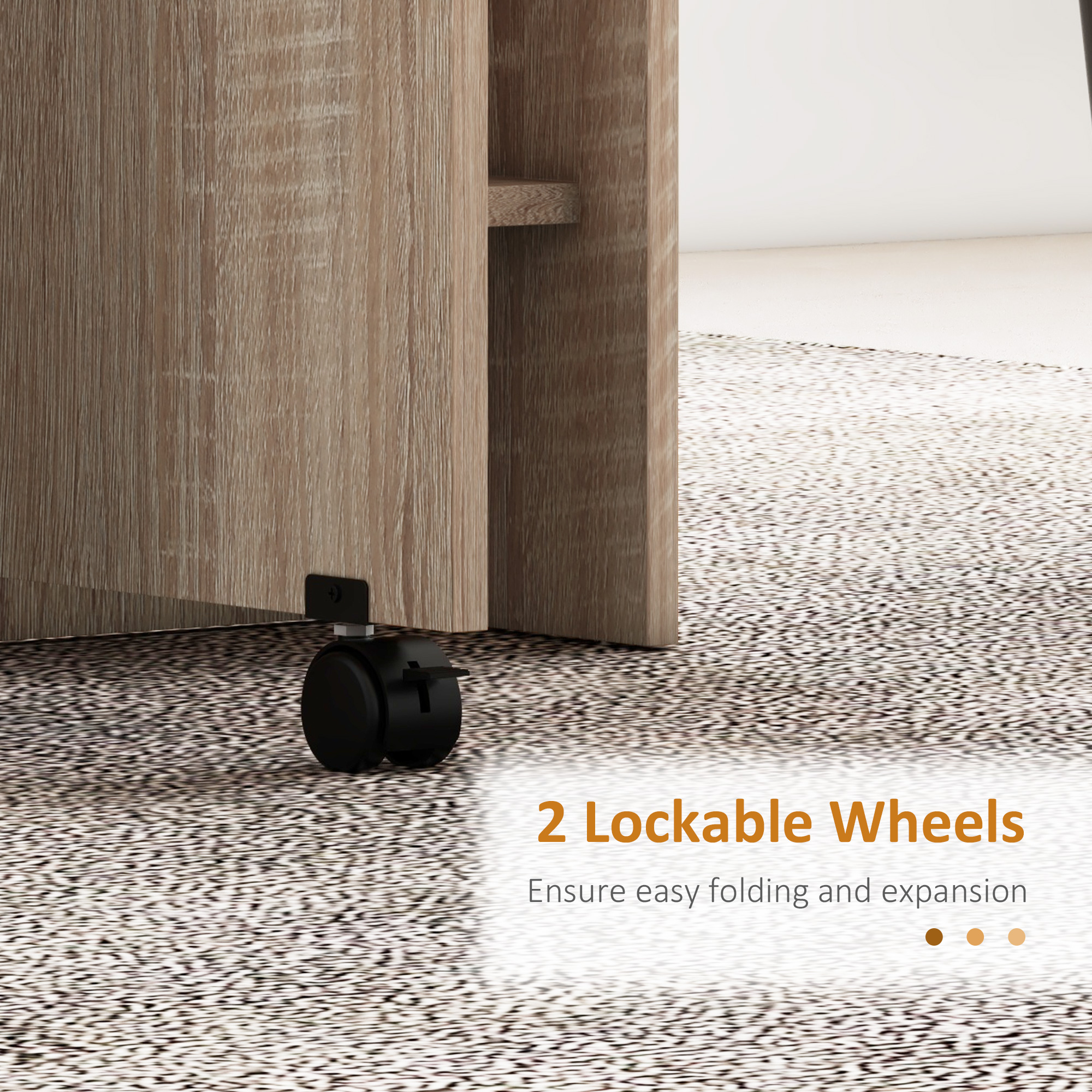Make large unused tables at home a thing of the past. Choose this drop leaf dining table for extending surface space, whenever you need it. Both sides lift up and drop down super easily. Inside there are two shelves for close by and discreet storage - easy to keep things close to you. Side panels are complete with braked wheels for expanding and folding the kitchen table conveniently.