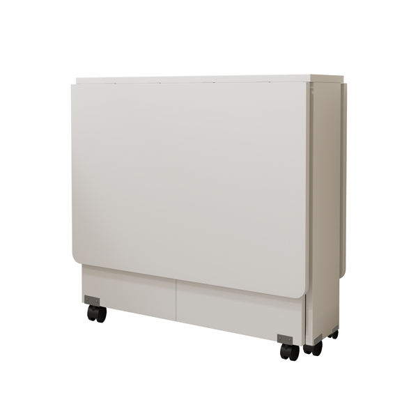 Folding Drop Leaf Dining Table With 6 Wheels And 2-Layer Storage Shelf, Space Saving Table For Small Spaces, 47.2 Inch D X 23.6 Inch W X 30.3 Inch H, White