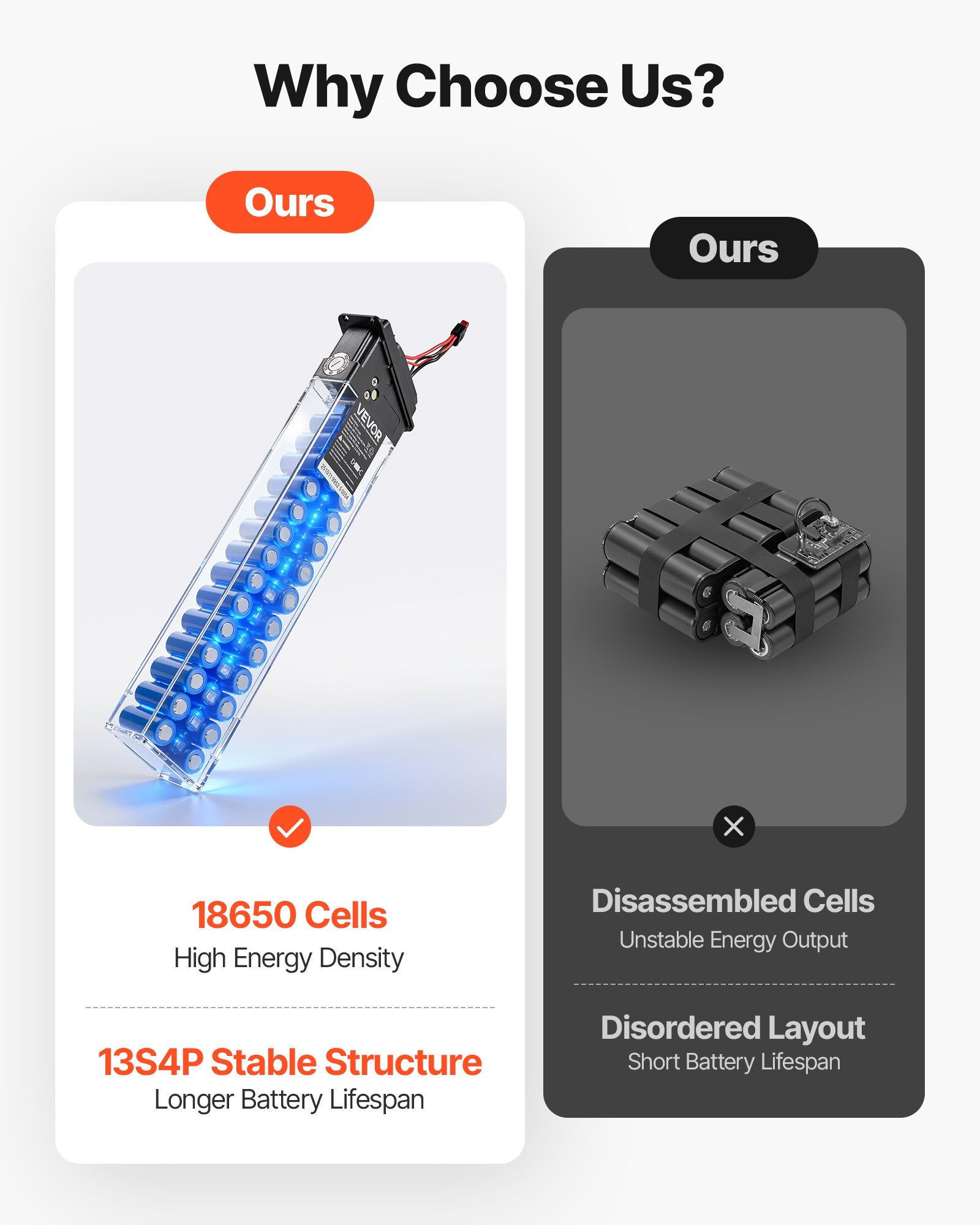 Multiple Protections: Our ebike replacement battery has built-in BMS and battery base, providing overcharge, over-discharge, overcurrent, overheating, and short-circuit protection. It ensures stable voltage, reduces battery wear, and detects issues