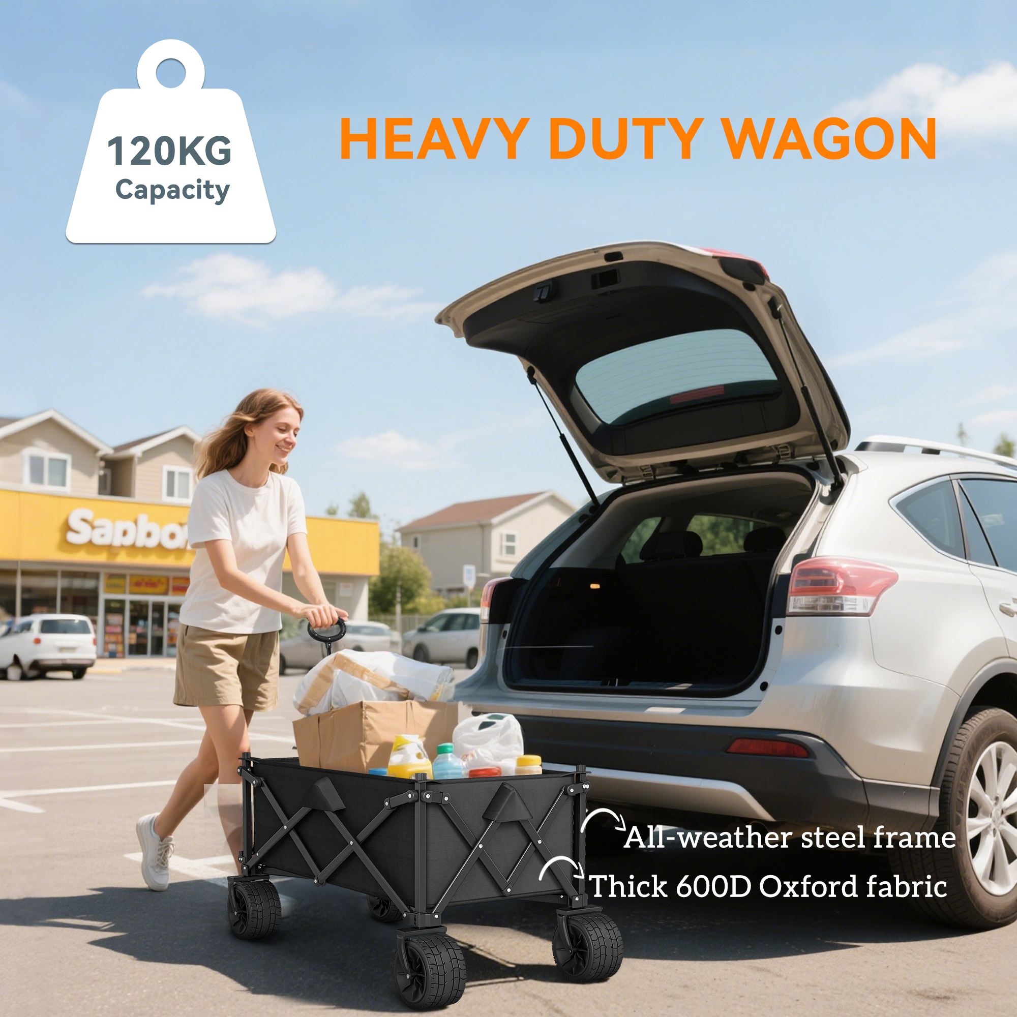Folding Garden Trolley, Outdoor Wagon Cart With Carry Bag, For Beach, Camping, Festival, 120KG Capacity, Black