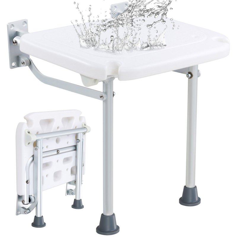 16-Inch, Dual Leg Support: Featuring two support legs with non-slip foot pads, our wall mounted shower seat ensures enhanced load-bearing capacity, supporting up to 500 lbs/226.8 kg with steadfast stability. Designed to accommodate individuals of all ages and mobility levels – from seniors and pregnant women to children and people with limited mobility.