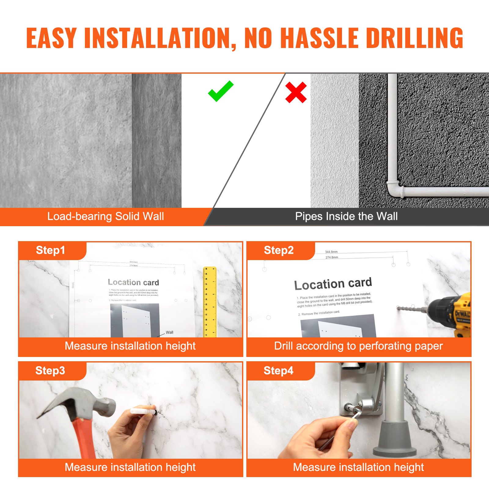 Drill-Hole Wall Mounting: Thoughtfully equipped with mounting hole guiding sticker for precise drilling – no need for additional markings with a pen. Complete with 304 stainless steel screws and other accessories, ensuring secure fixation. Note: Install our folding shower seat on load-bearing solid walls.