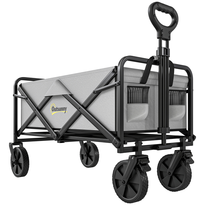Take the effort out of moving food, bottles, boxes and everything else in-between with this pull cart. It effortlessly moves up to 68kg, so it takes a lot! The steel frame means a strong core, fitted with four multi-ground wheels to move on all terrains. Foldable design to keep it tucked away in your car without using much space, this trolley on wheels is finished with a telescopic handle to pull it along easily.