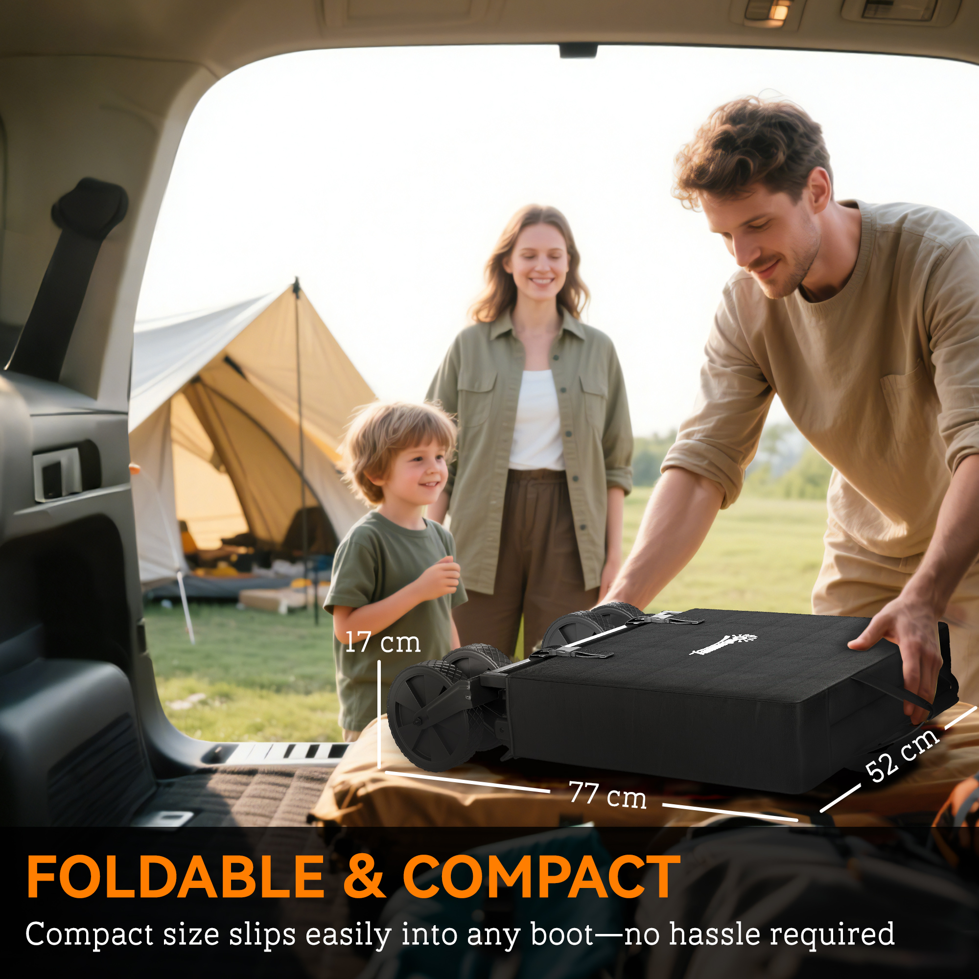 Take the effort out of moving food, bottles, boxes and everything else in-between with this pull cart. It effortlessly moves up to 68kg, so it takes a lot! The steel frame means a strong core, fitted with four multi-ground wheels to move on all terrains. Foldable design to keep it tucked away in your car without using much space, this trolley on wheels is finished with a telescopic handle to pull it along easily.