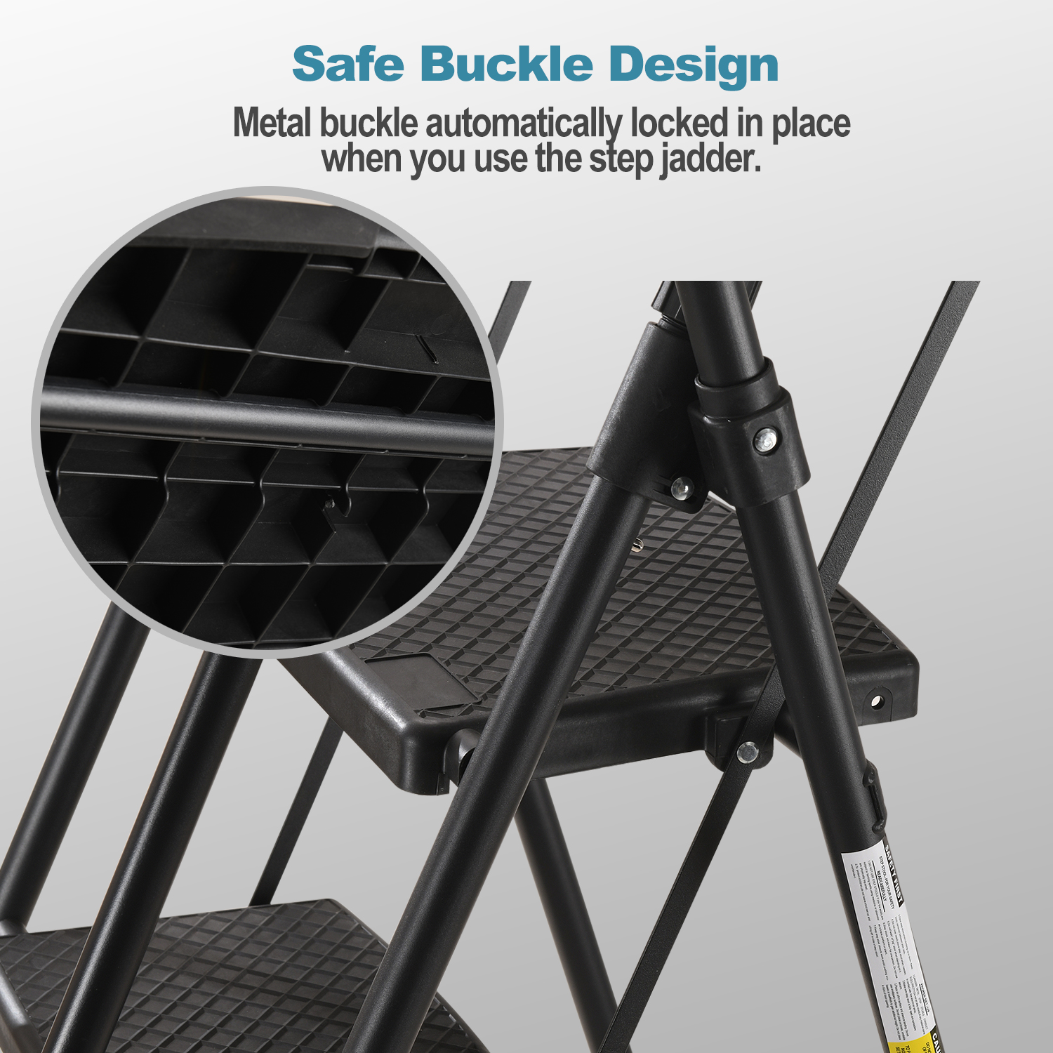 Product Name:Folding step stool with bandwidth anti slip pedals and tool trays, lightweight and portable steel step stool, perfect for kitchen and home, indoor and outdoor use, sturdy steel steps (6 levels)