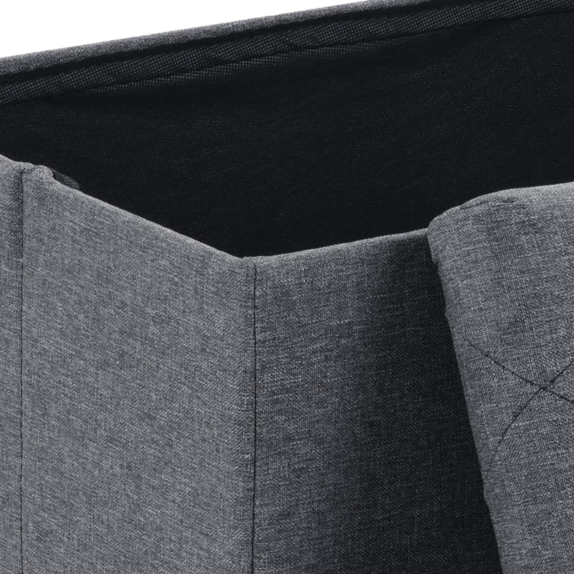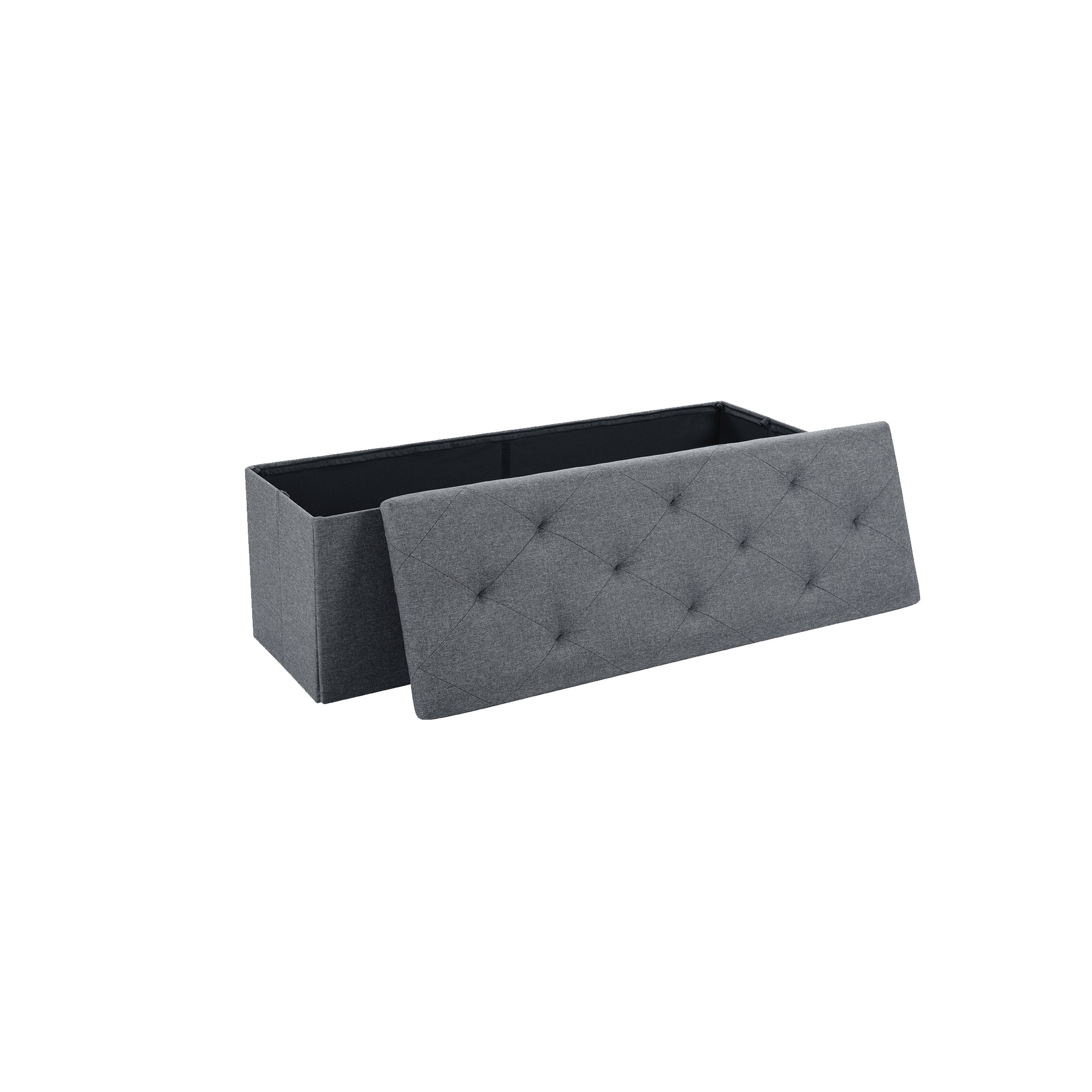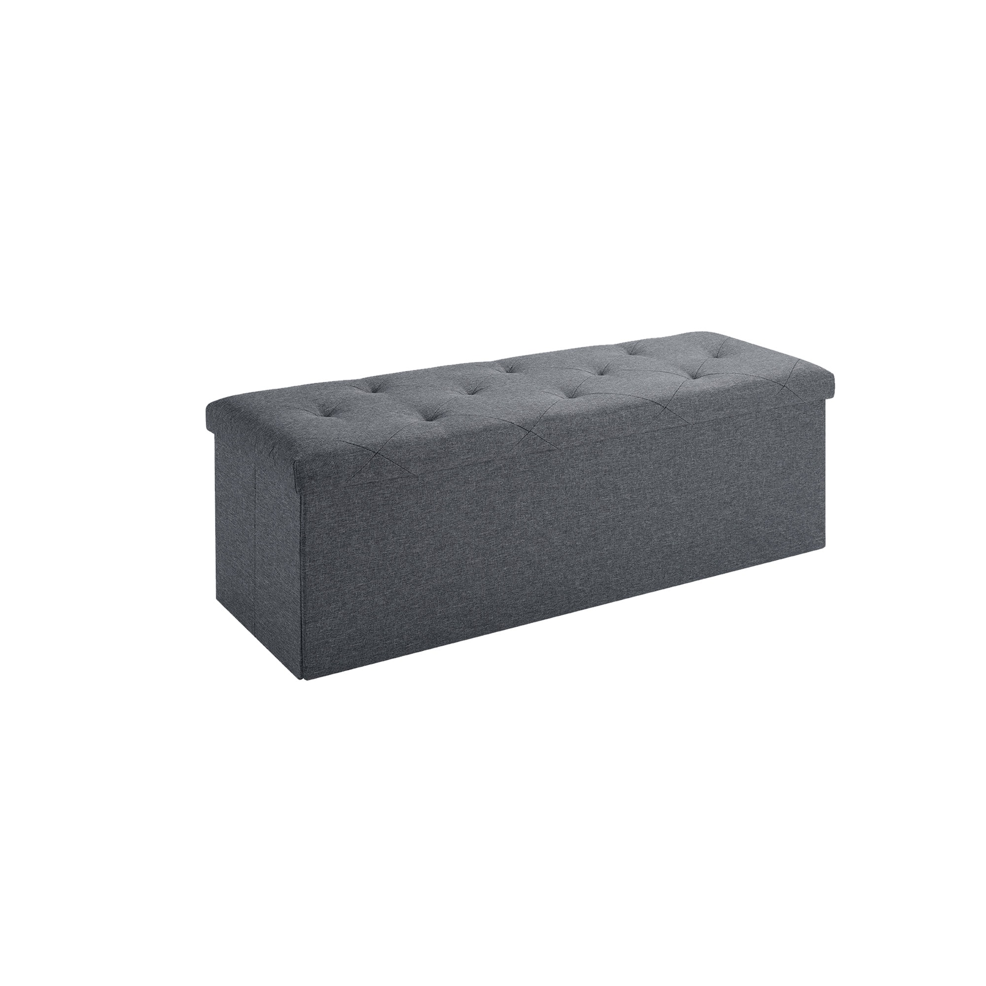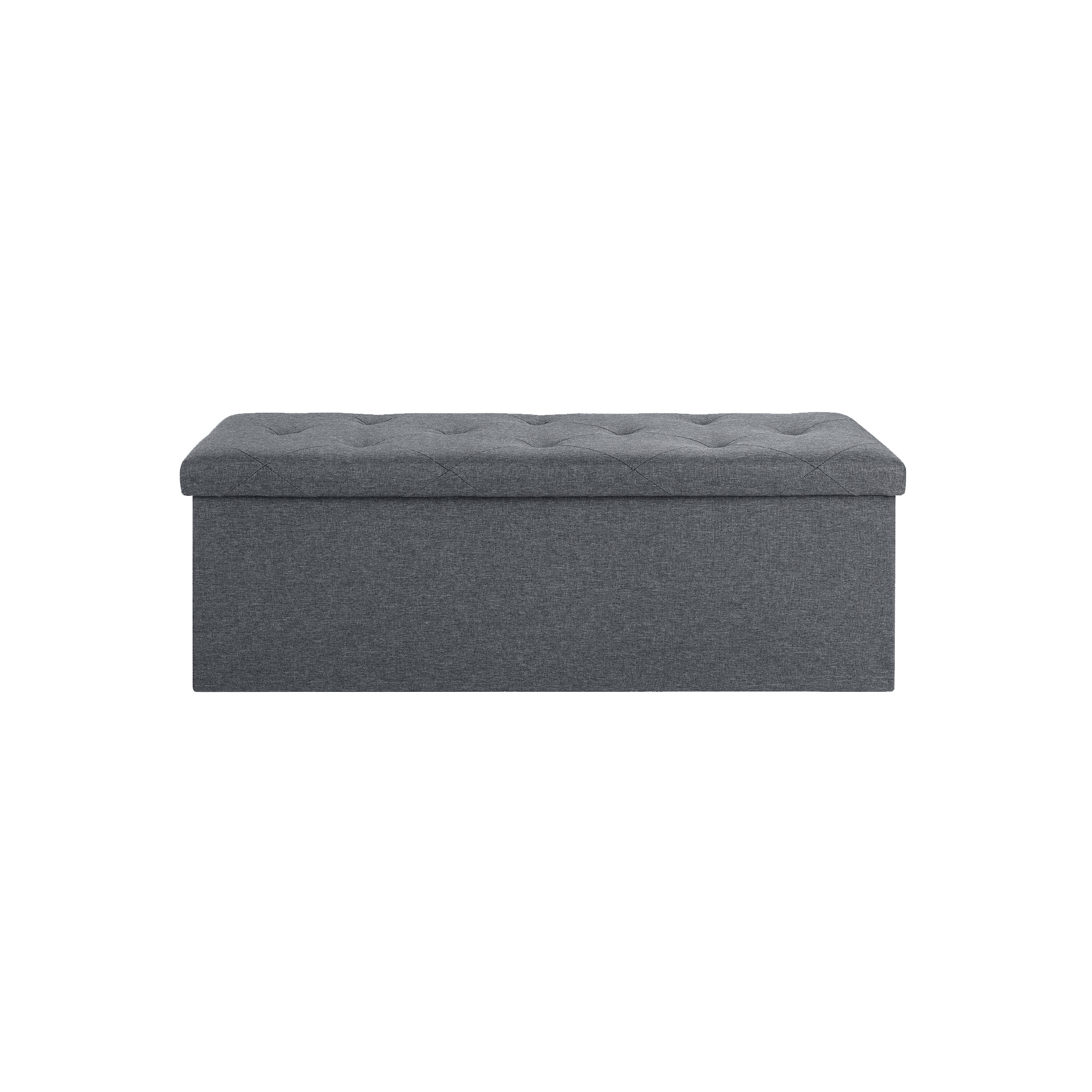 【Premium Comfort & Style】: Padded with thick sponge and wrapped in soft Linen fabric for a cozy seat, paired with sleek gray tones to match any decor. Traditional-style tufts create a unique fascination, making this folding storage bench an real eye-catcher no matter where it is placed.