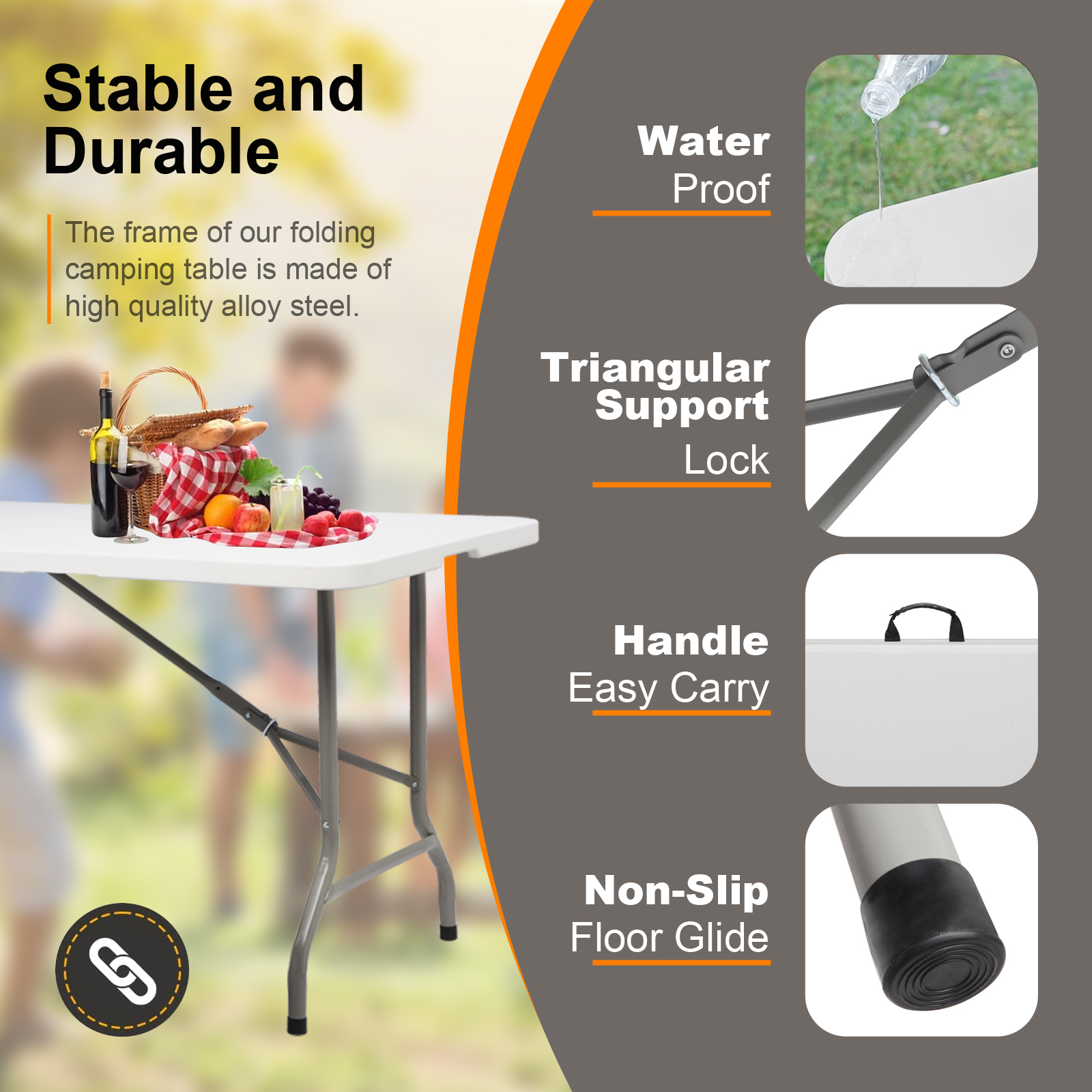 Folding Table 6ft Heavy Duty Portable Table Indoor Outdoor with Parties, Camping & BBQs, Folds in Half for Easy Storage, No Assembly Required