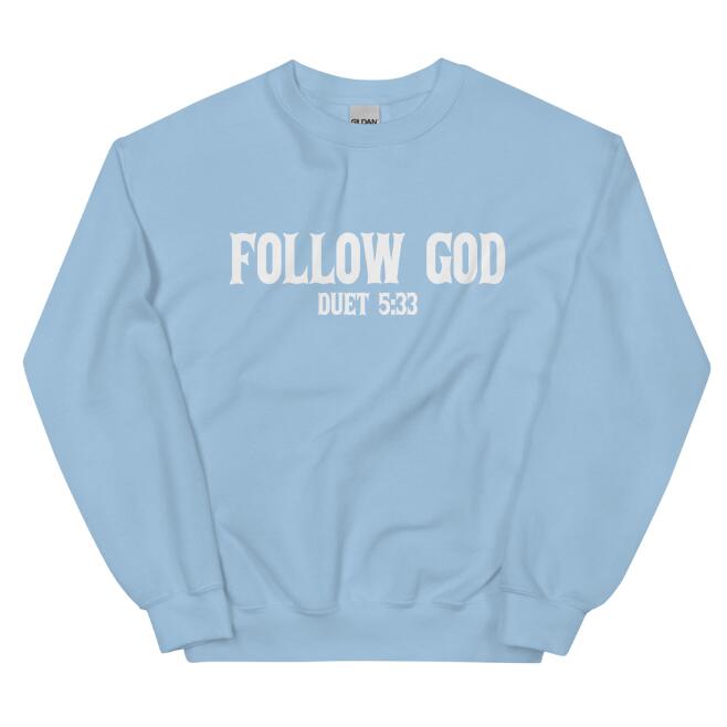 Follow God Printed Cartoon Crew Neck Casual Pullover