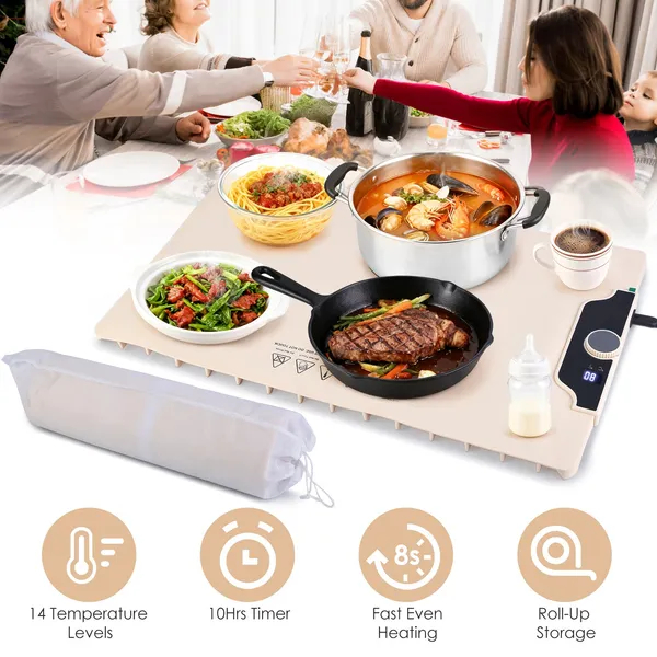 *8S Full Surface Heating*:Adopts advanced graphene heating wires that cover the entire bottom surface,our food warming mat ensures rapid and even heat distribution in about 8S,effectively keeping your meals warm and delicious. Ideal for a variety of occasions such as family gatherings,festive celebrations,social dining events,parties,and buffets.