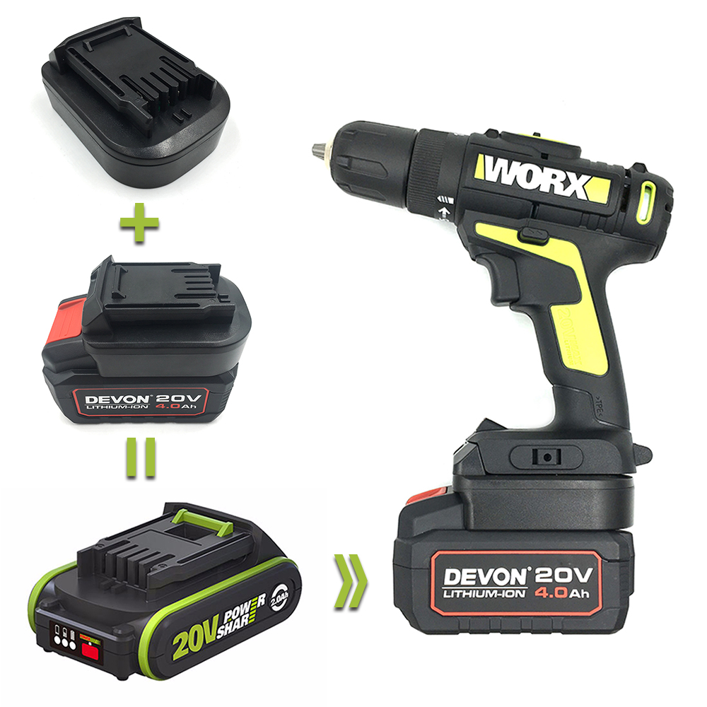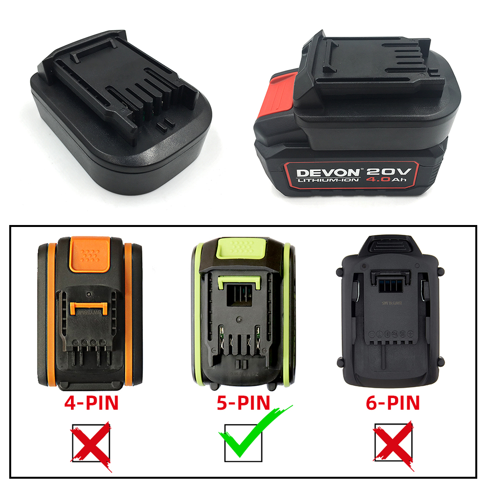 This adapter can convert Milwaukee 18V M18 RED slider lithium-ion battery to Worx 20V 5-pin lithium-ion battery.
