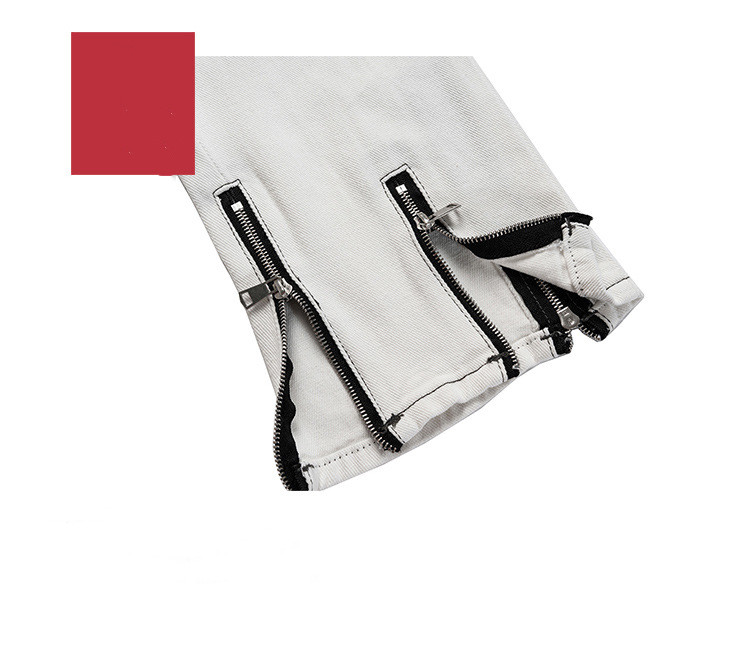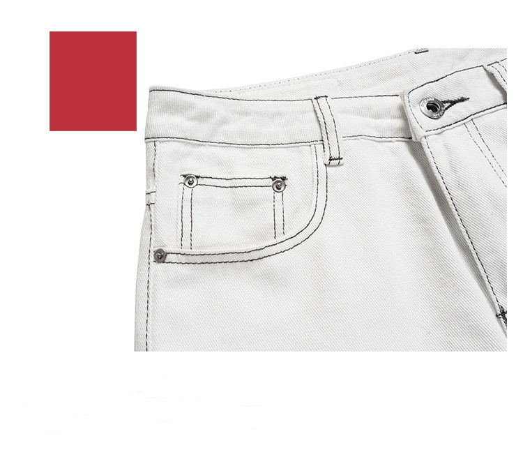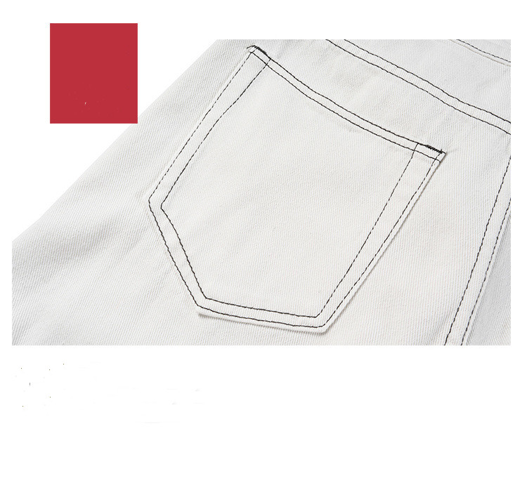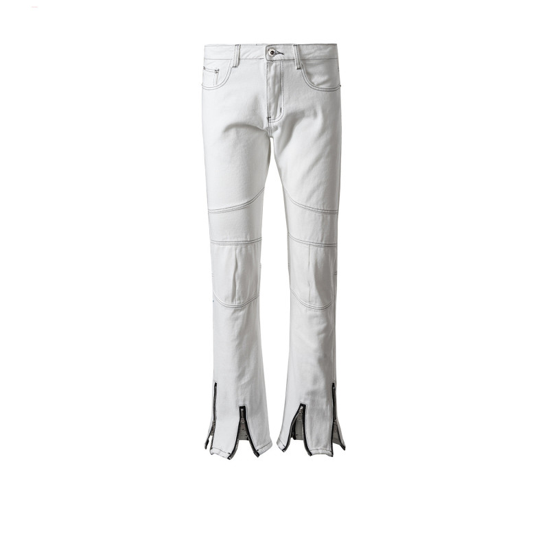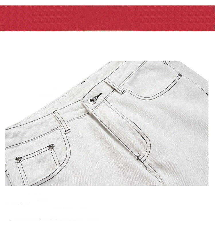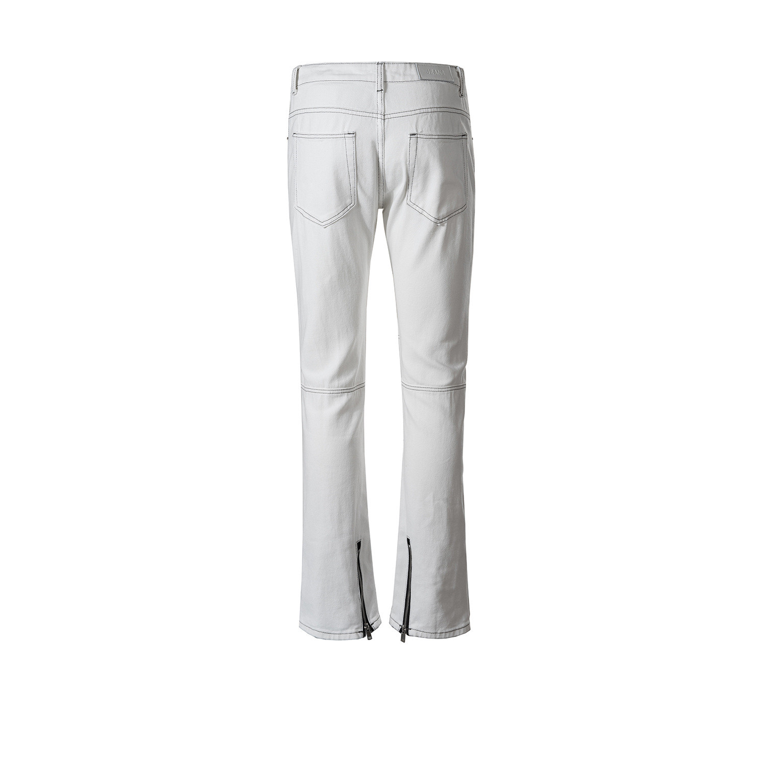 Footed Topstitched Trousers Men's And Women's White Jeans