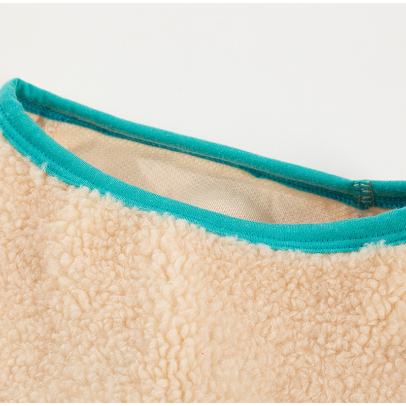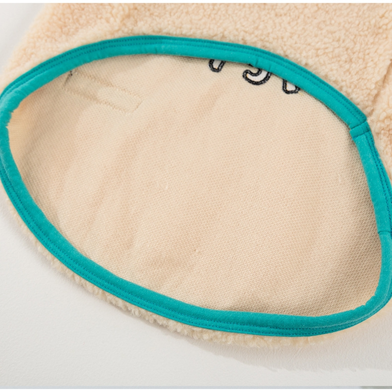 A comfortable and stylish pet vest for your big dog! This beige vest is made of soft Sherpa fabric with a bear pattern, ensuring your pet stands out. The high collar and plush material provide extra warmth, and this vest is perfect for cool days. It combines comfort, fashion and durability, making it an ideal choice for daily walks or casual wear. This is a must-have for pet parents. They hope their large, furry companions stay warm and look very cute!