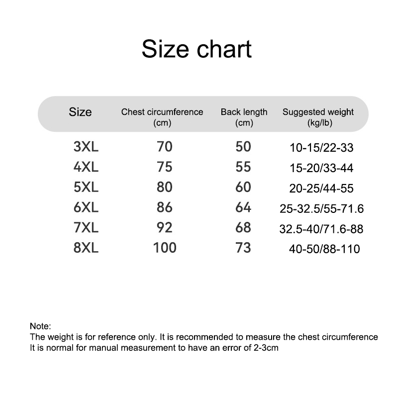 -3XL: Recommended Weight 10-15 kg (22-33 lbs)
