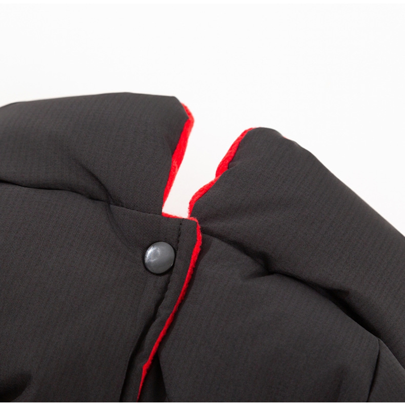 - Warm and windproof: The thick quilted filling locks in heat, while the smooth outer fabric can resist slight wind/moisture. The red border adds a popular color.