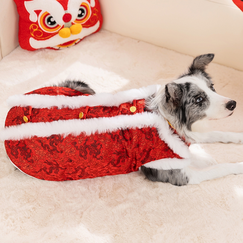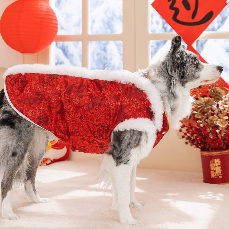 For Autumn And Winter, Large And Medium-sized Dogs, Golden Retrievers, New Year Rabbit Fur, Large Dogs, Button-up Tang Suits, Chinese-style Cotton-padded Clothes, And Pet Dog Clothing