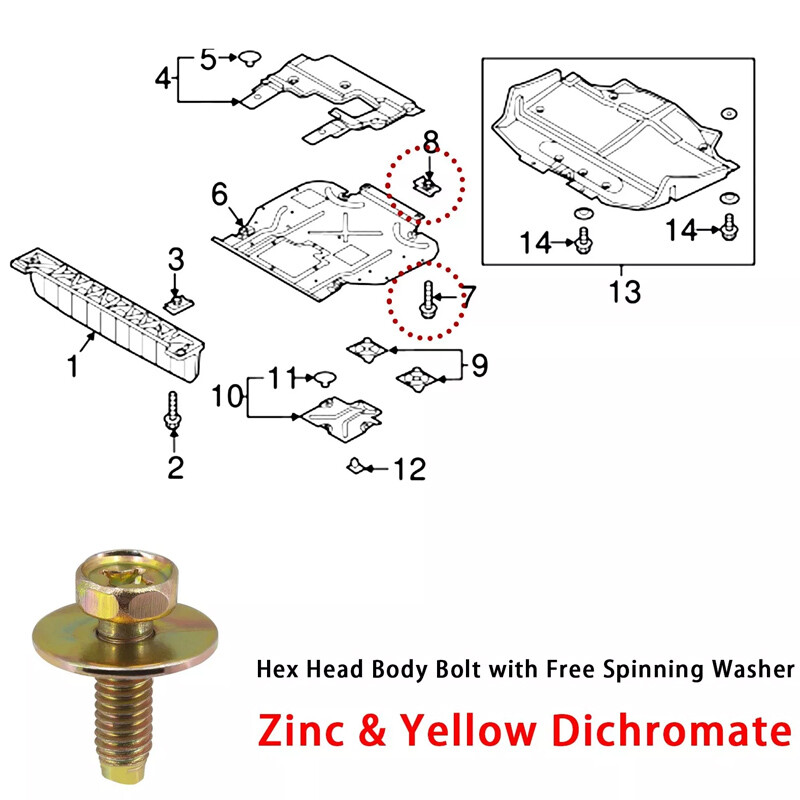 Bolt Size: M6-1.0 x 20mm long. 10mm hex