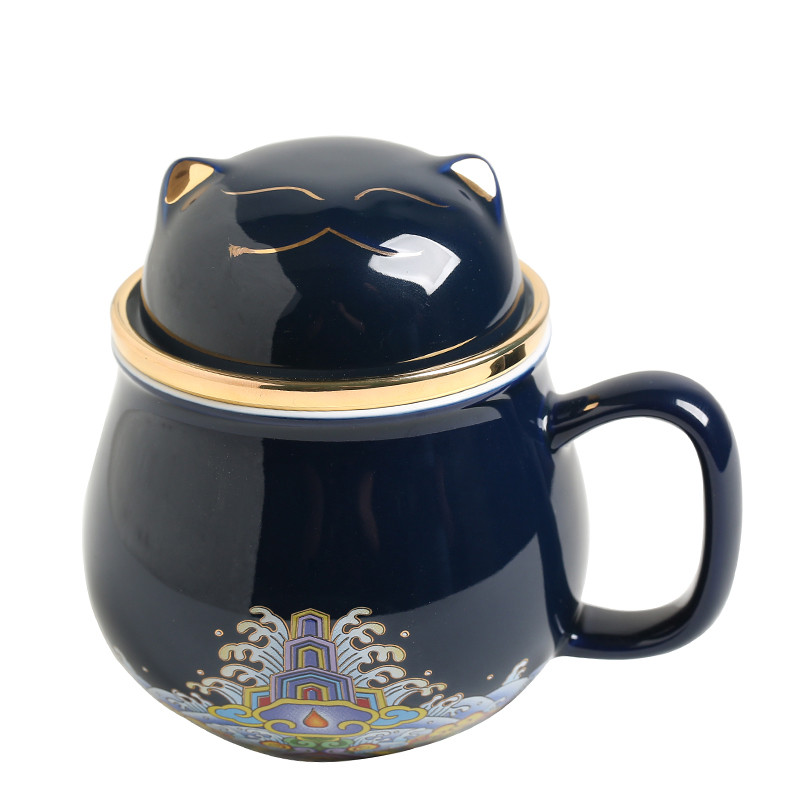 F: Blue Lucky Cat Cup + Travel Bag