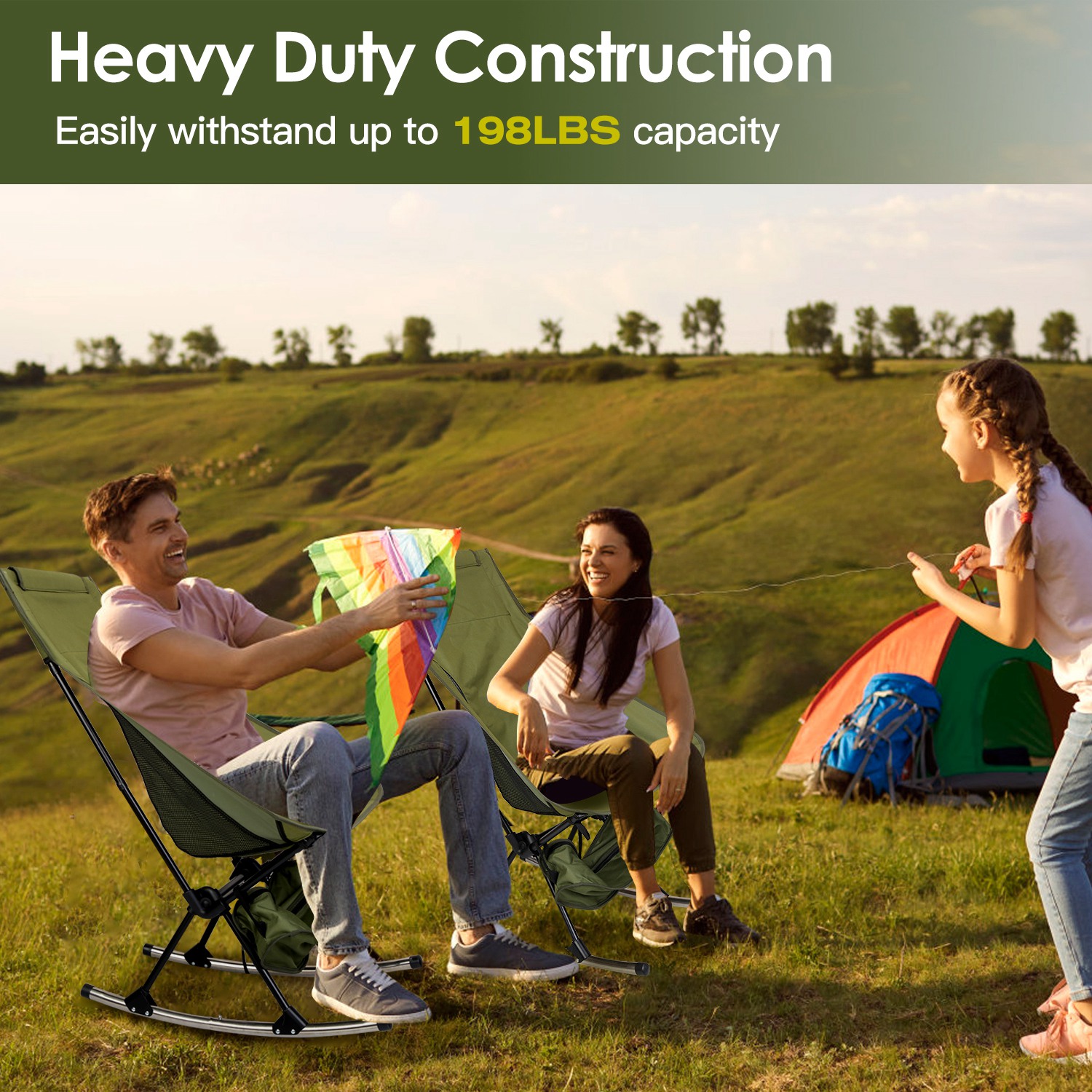 Forbidden To Sell On Temu 1Pc Portable Camping Rocking Chair 198LBS Weight Capacity Included Carry Bag High Back Rocker Chair For Patio Fishing Beach Lawn Travel