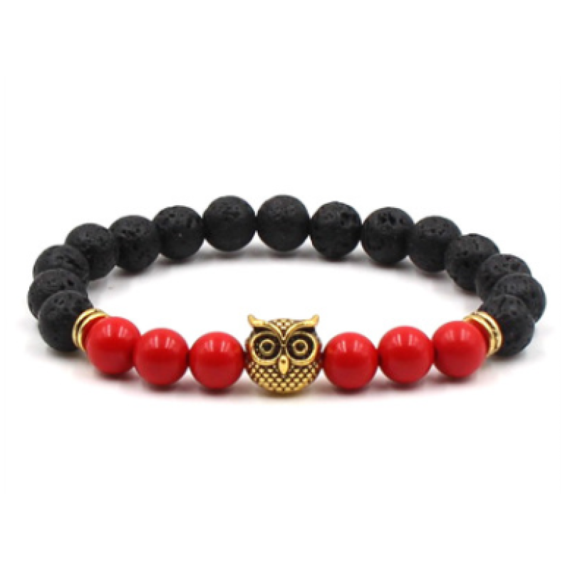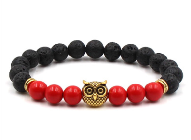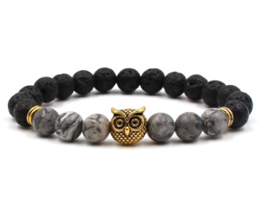 Foreign trade AliExpress best selling 8mm natural stone black lava volcanic stone bracelet gold alloy owl bracelet