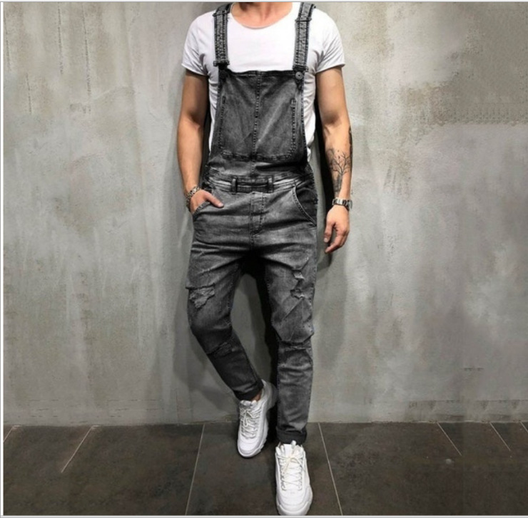 Foreign Trade Men's Jeans New Style Men's Denim Suspenders Ripped Suspenders Large Size New Suspenders