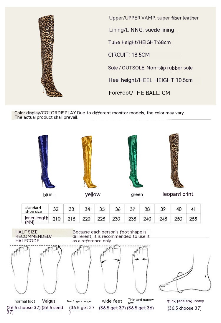 Foreign Trade Women's Bright Leather Pointed Toe Stiletto Heel Over-the-knee Gold Plus Size Boots