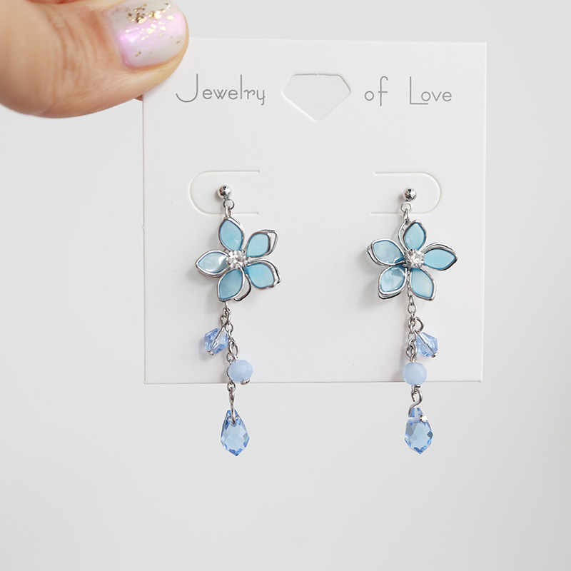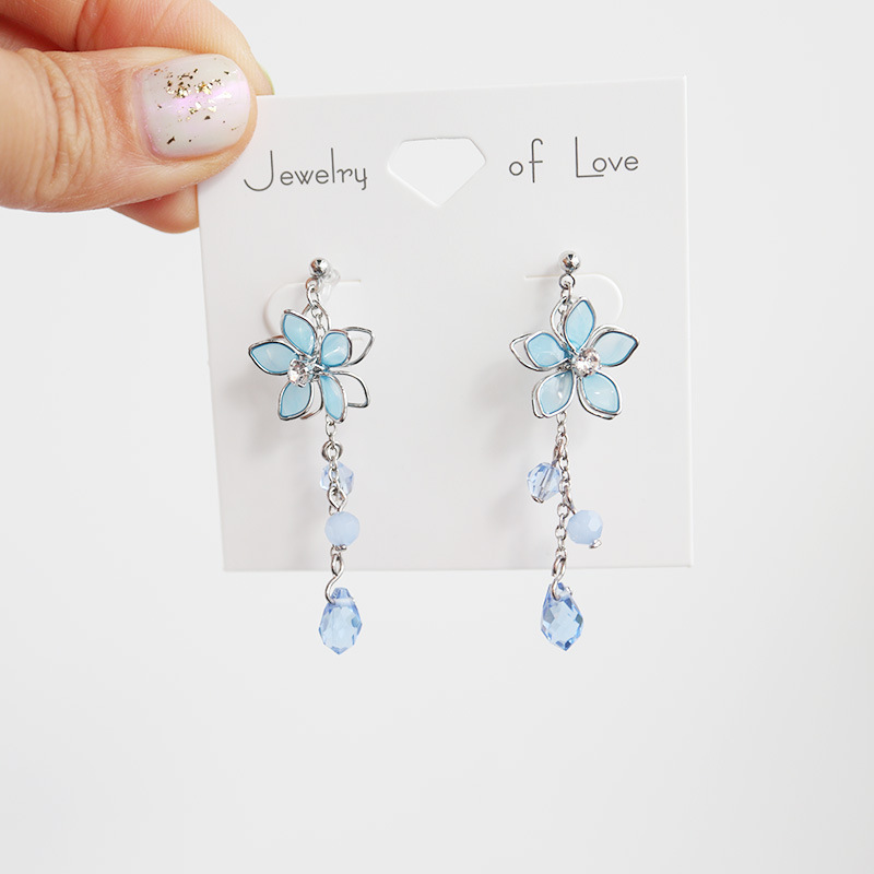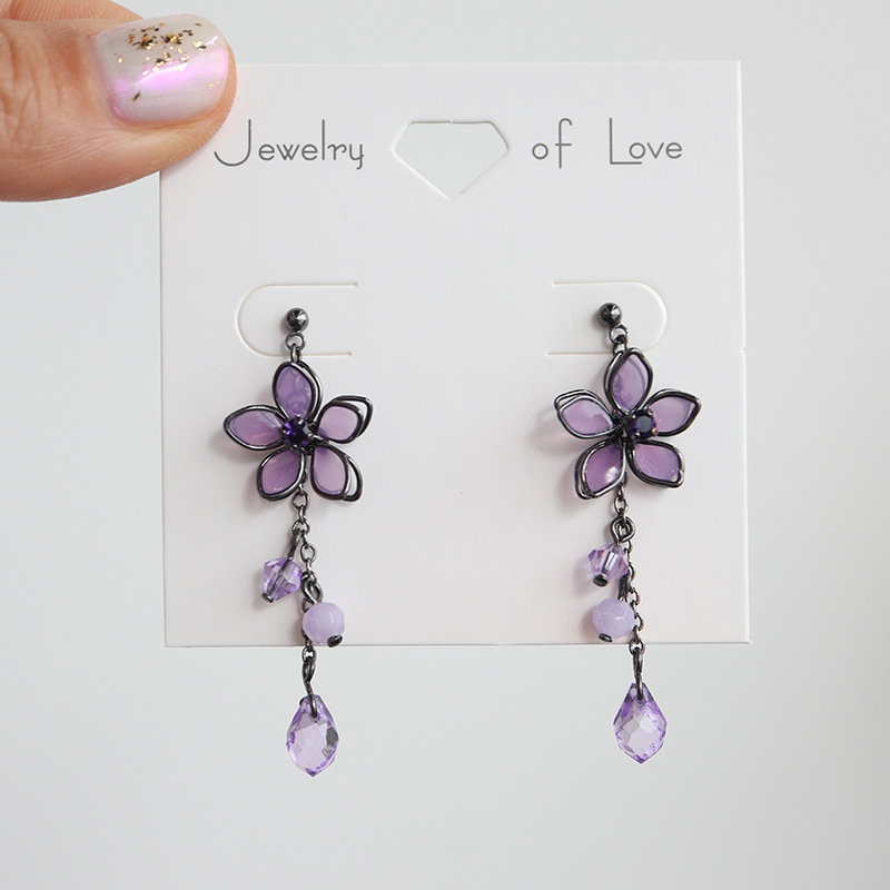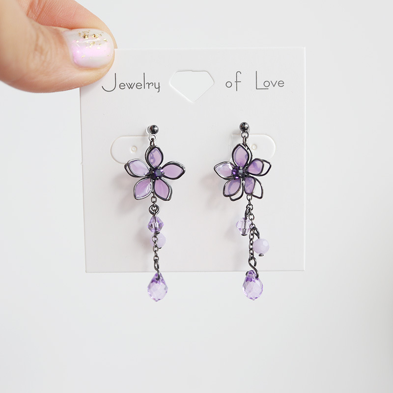 Color: black purple flower-silver needle, black purple flower-resin ear clip, platinum blue flower-silver needle, platinum blue flower-resin ear clip, pink gold pink flower-silver needle, pink gold pink flower-resin ear clip