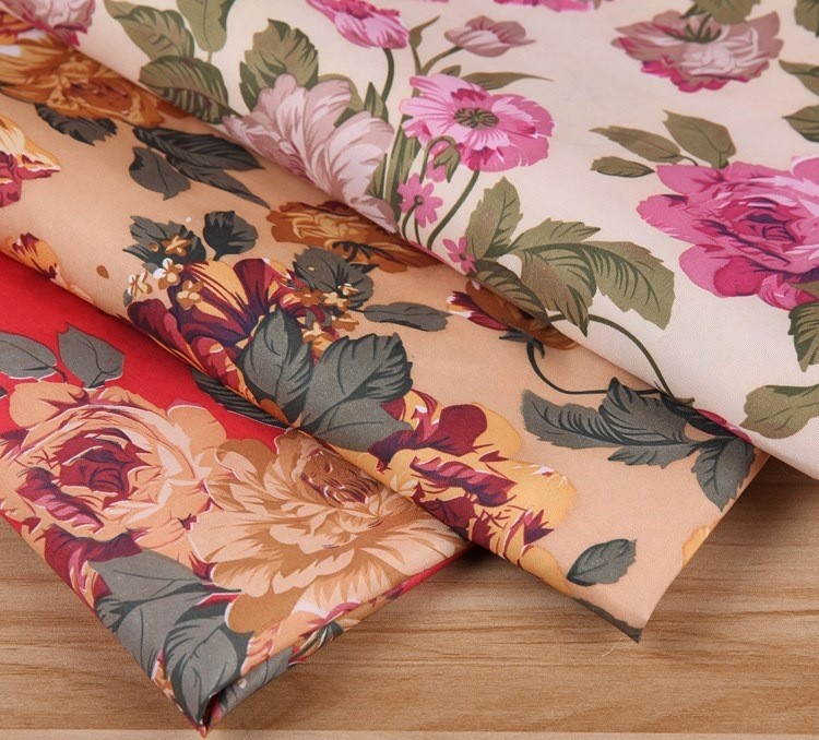 Four-color Peony Peach Skin Printed Polyester Fabric