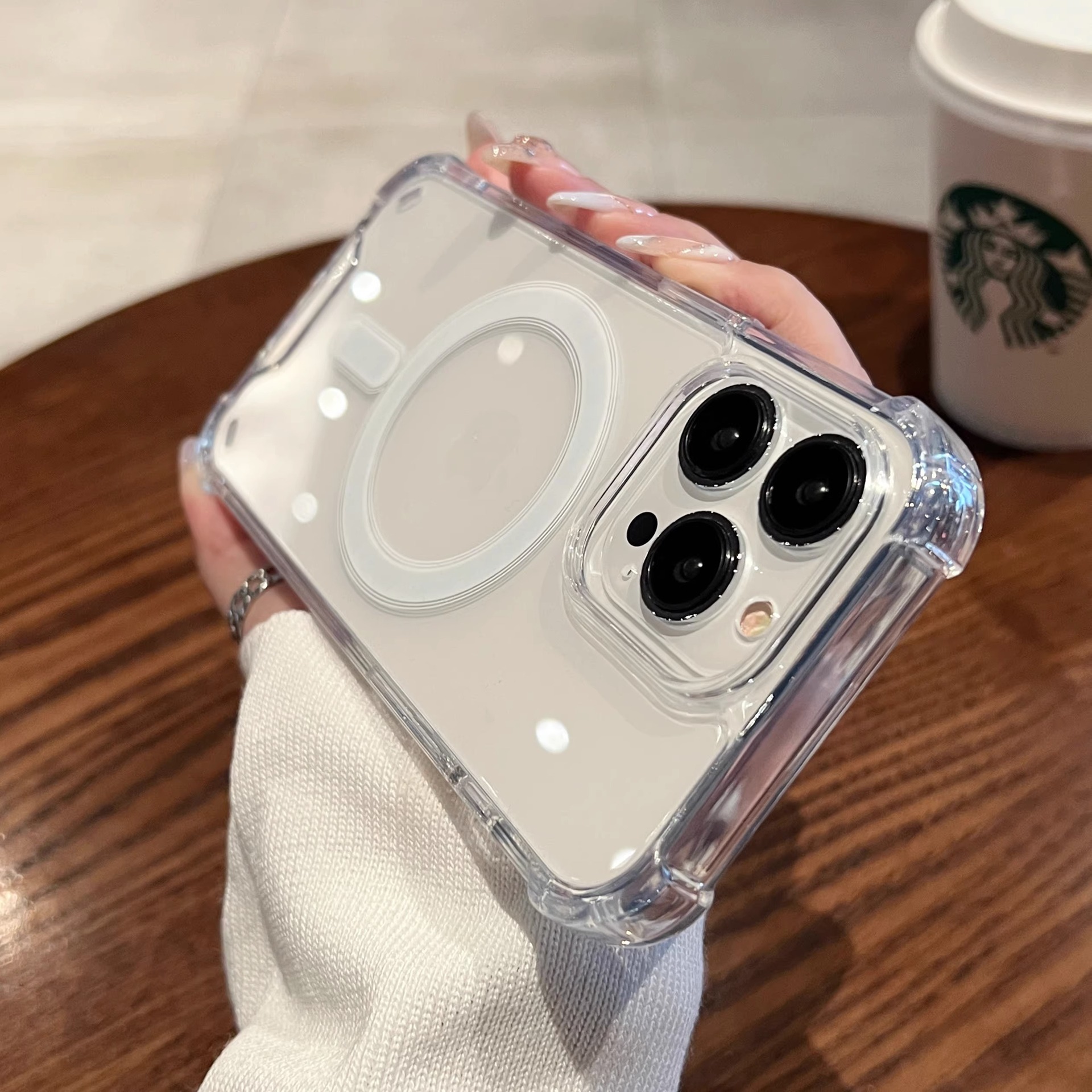 Color: [fully transparent] Magsafe magnetic suction multi-angle reinforced airbag