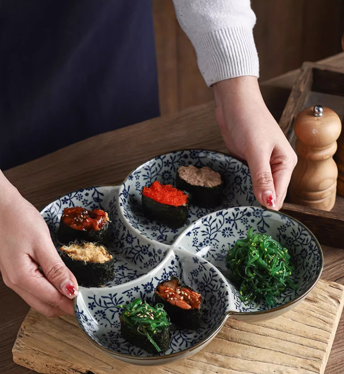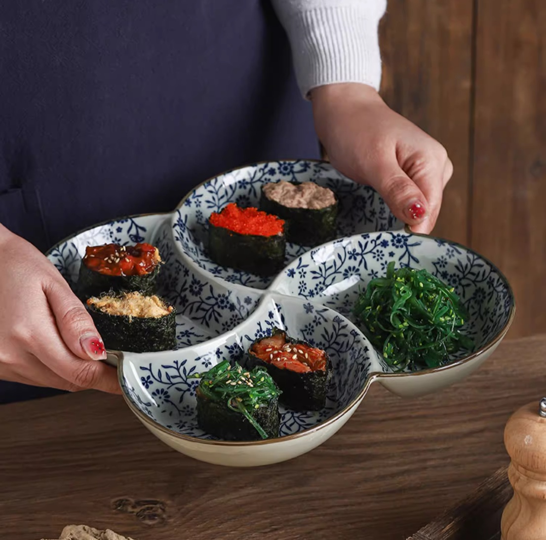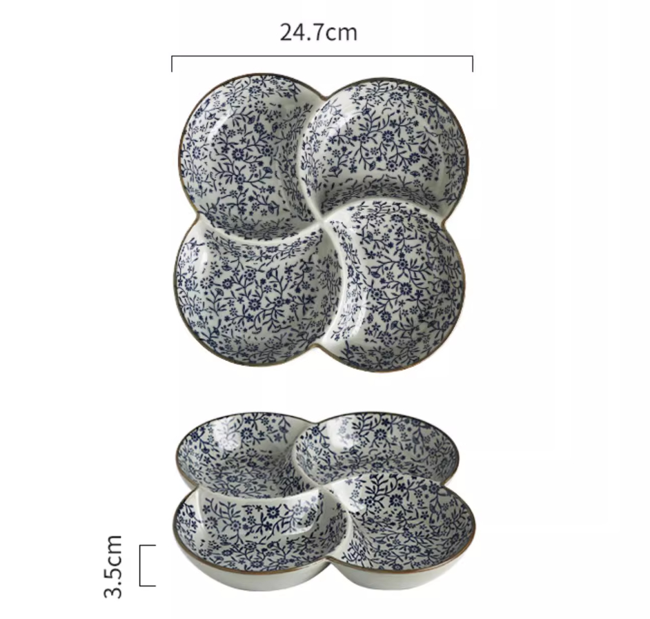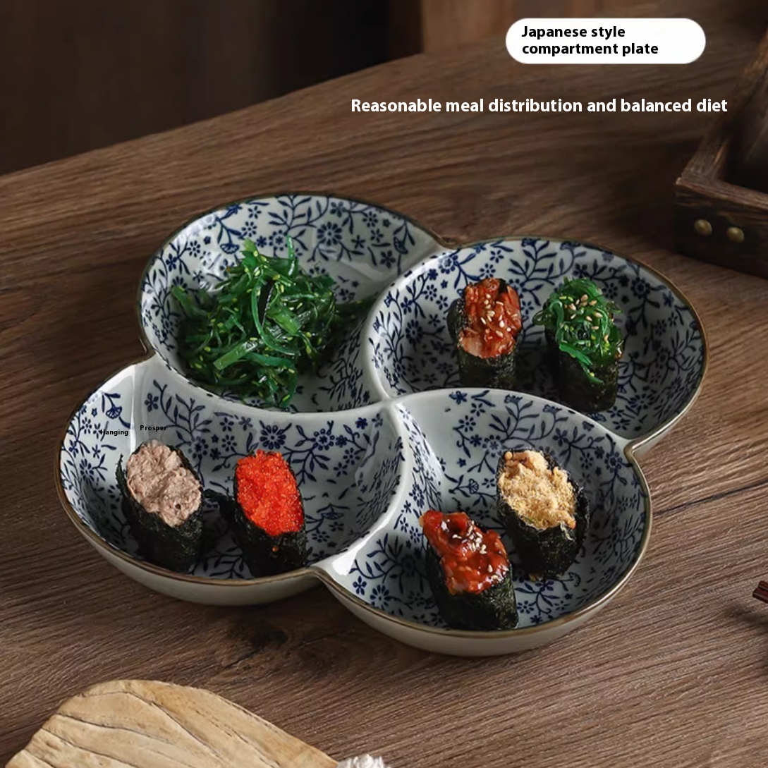 Color classification: 9.5 inches four grid plate auspicious flowers
