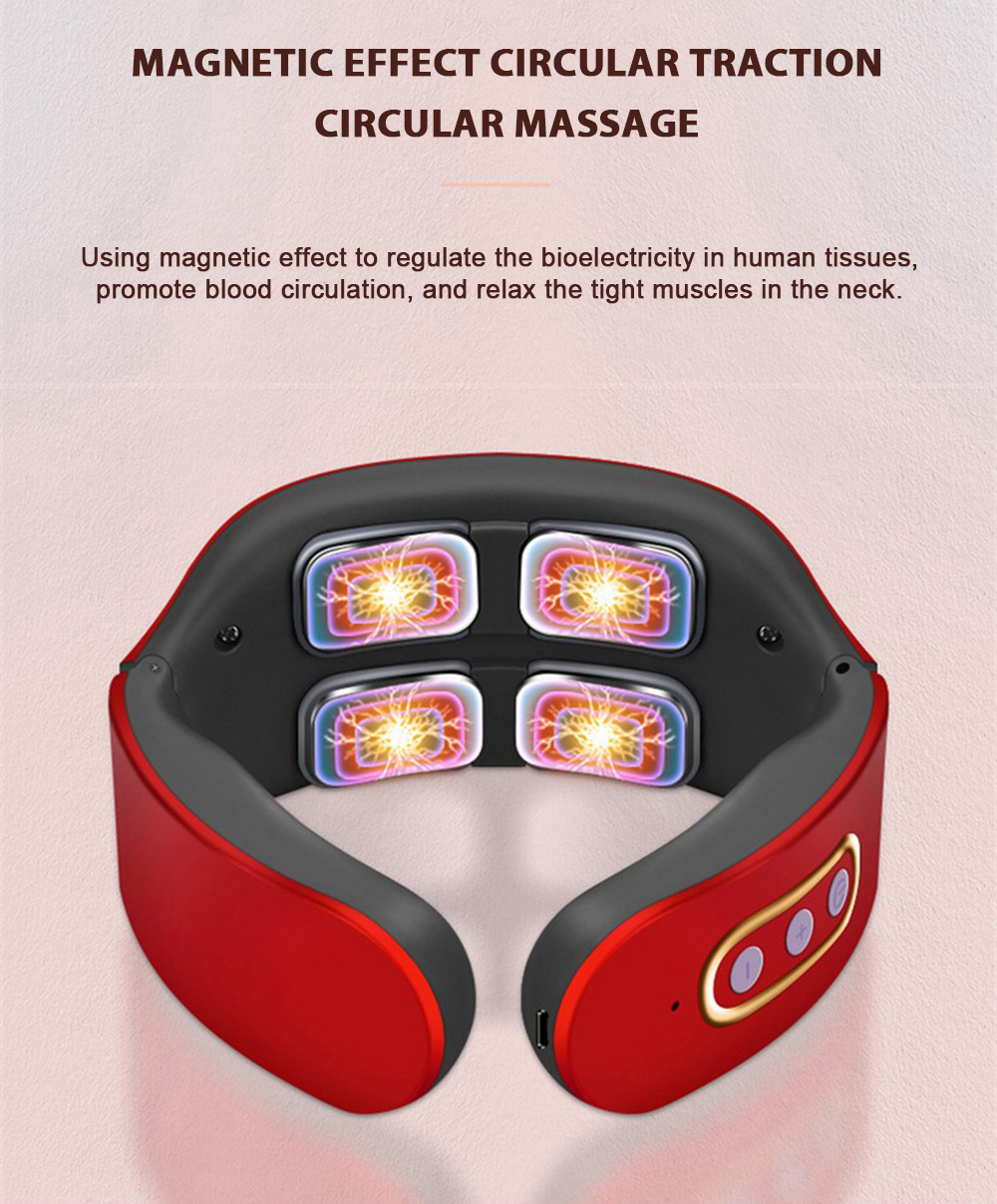 Four-Head Electric Pulse Neck Massager Far Infrared Heat Pain Relief Tool
