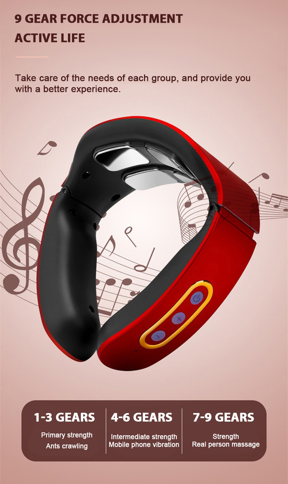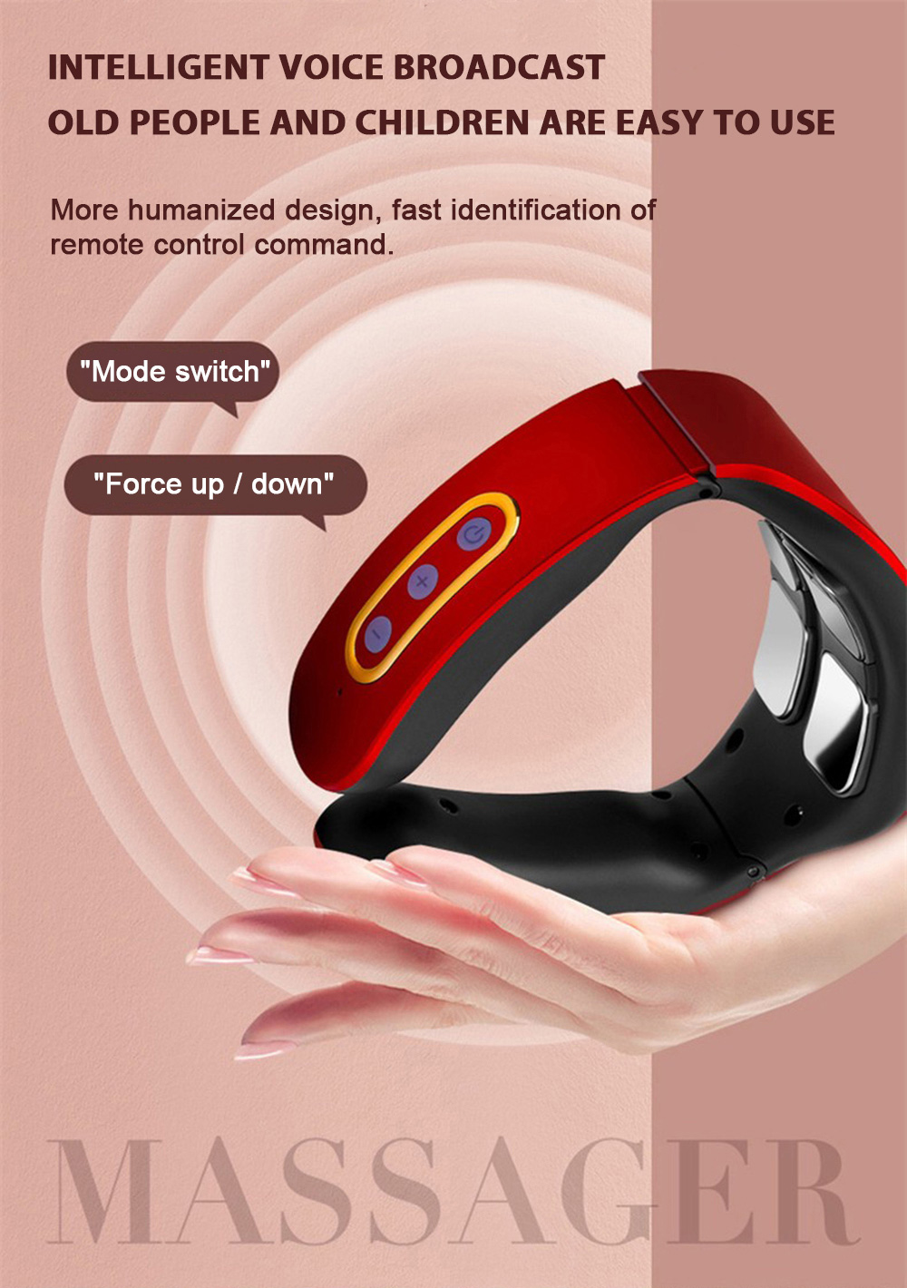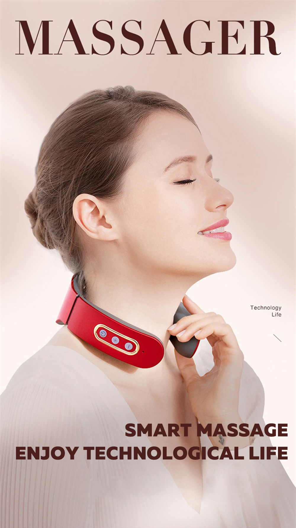 1) Before use, first wet the skin of the cervical spine with a wet towel, and then put the product around the neck, make the electrode close to the skin of the cervical spine, adjust the position of the product, turn on the host and adjust the appropriate massage intensity and mode.