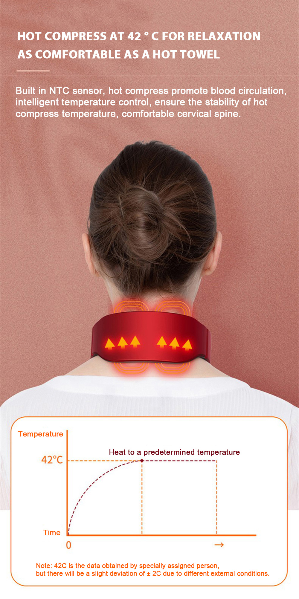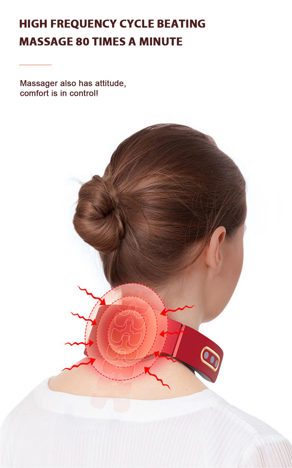 【Upgraded Technology】Built-in magnetic stones care for health, TENS pulse gets deeply into the muscle for full massaging. Along with the 38-42℃ hot compress function, it ensures deep and comprehensive massage.