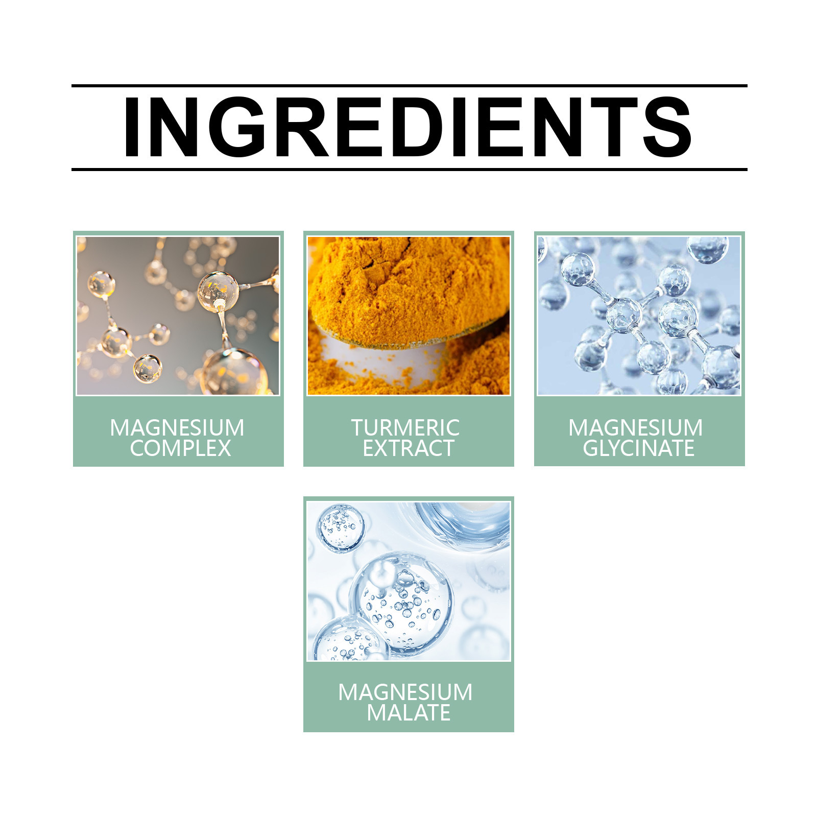 Product information:Ingredients: magnesium citrate, magnesium glycine, magnesium malate, total magnesium, turmeric extract.