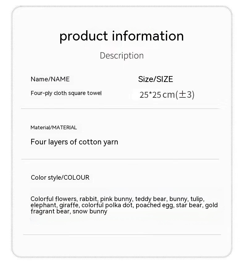 Product information:Material: gauze Production process: Printing Category: Towel