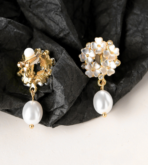 Color: Golden-ear studs (freshwater pearl style), Golden-ear clips (freshwater pearl style)